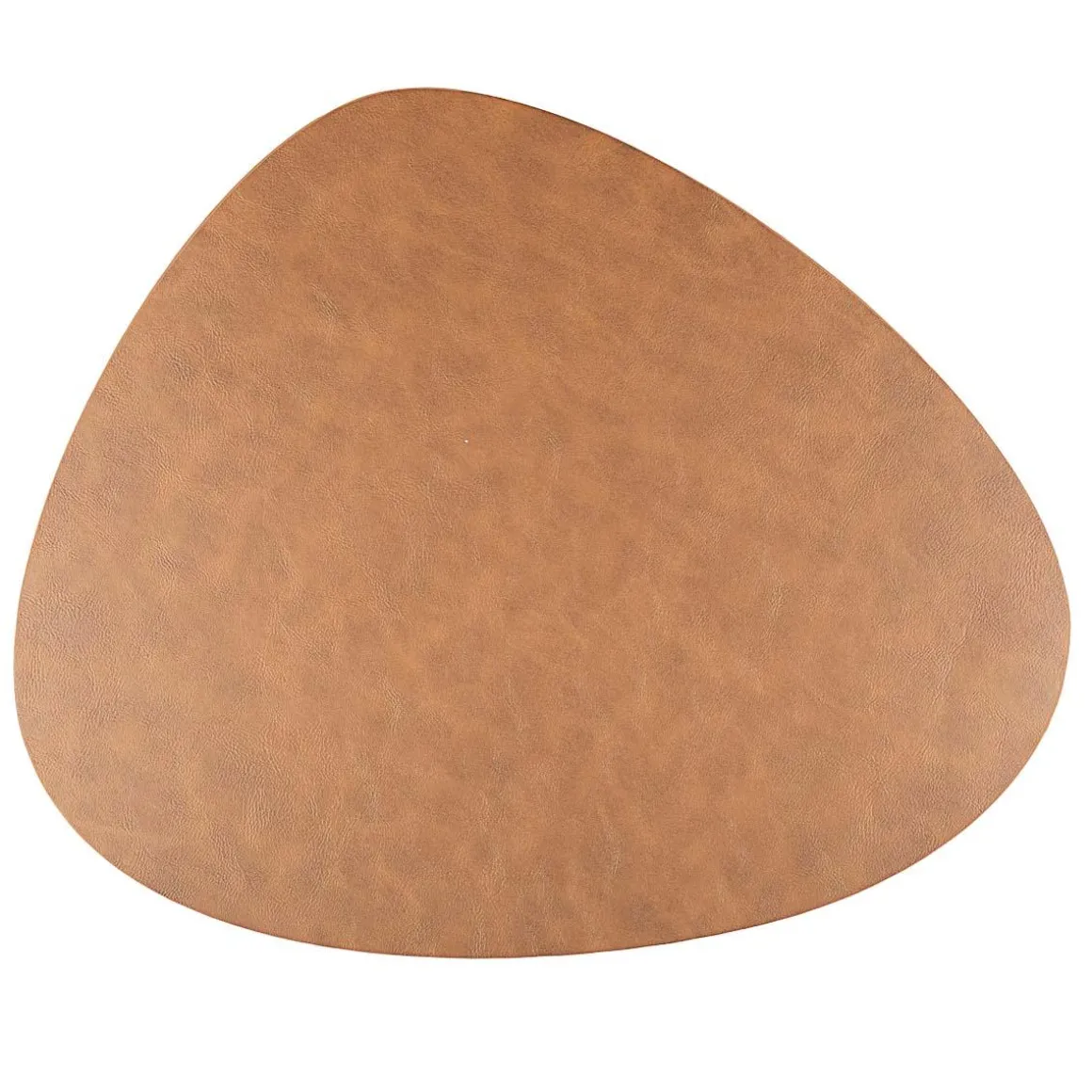 Stilig spisebrikke eller dekkebrikke i en gøyal form, supre når borddekkingen trenger den siste prikken over i’en. Brikken er laget i imitert skinn og finnes også i .