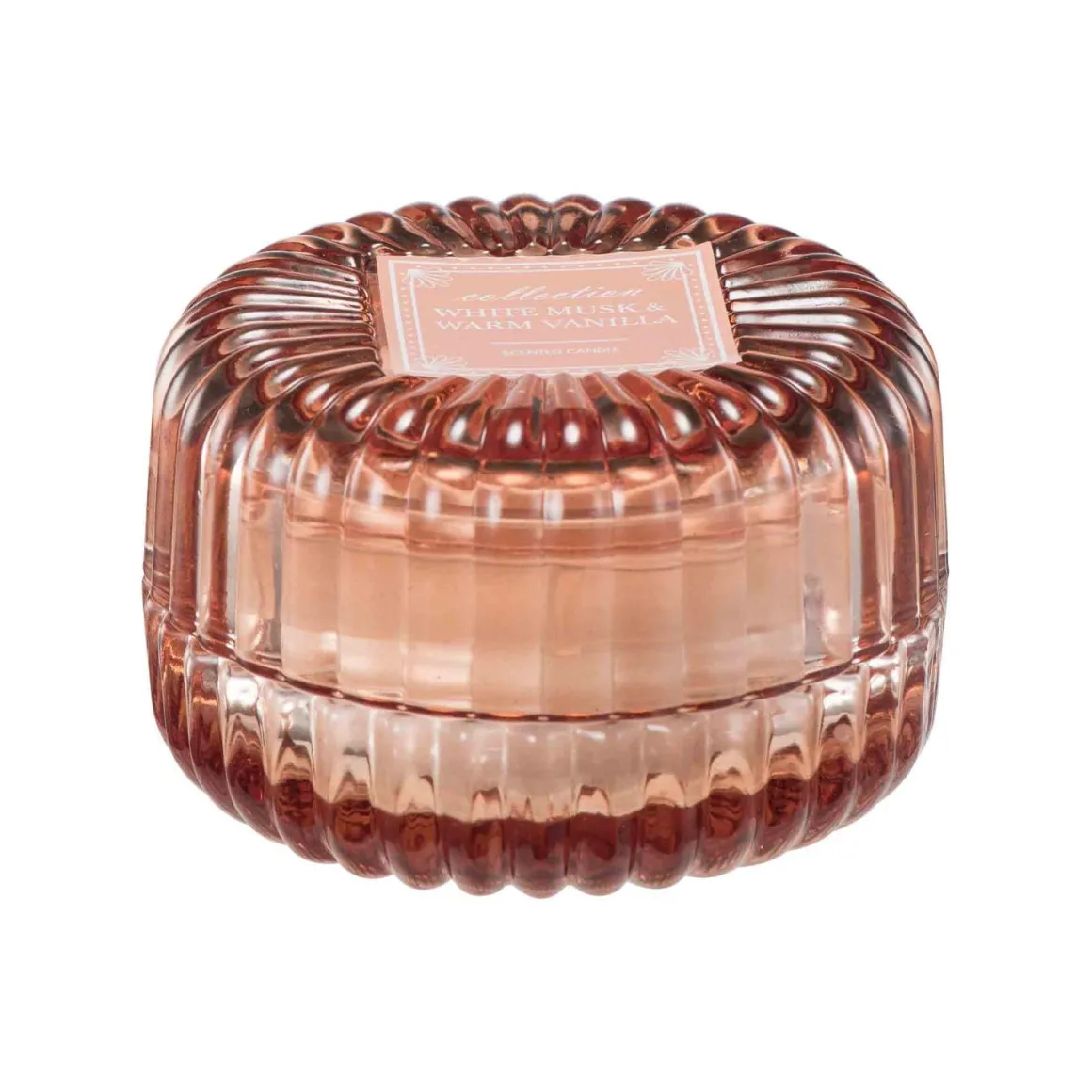 En harmonisk duft av white musk og varm vanilje sprer seg i rommet. Det ferksen glasset gir en rolig stemning, enten det står på badet eller i stua. Når lyset er brent opp, blir krukken en fin oppbevaringsboks. Passer perfekt med andre duftlys eller myke tekstiler. En fin gave eller en liten luksus til deg selv.