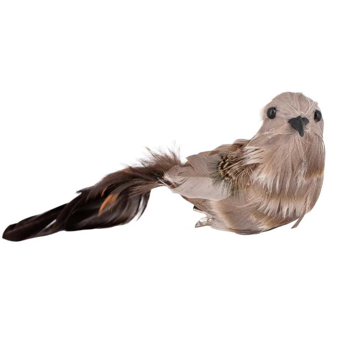 Lekker liten fugl med klype som kan festes på hva enn du måtte ønske. Brun fugl med fjær. Passer perfekt inn sittende på en adventsstake eller sammen med julekulene dine på juletreet.