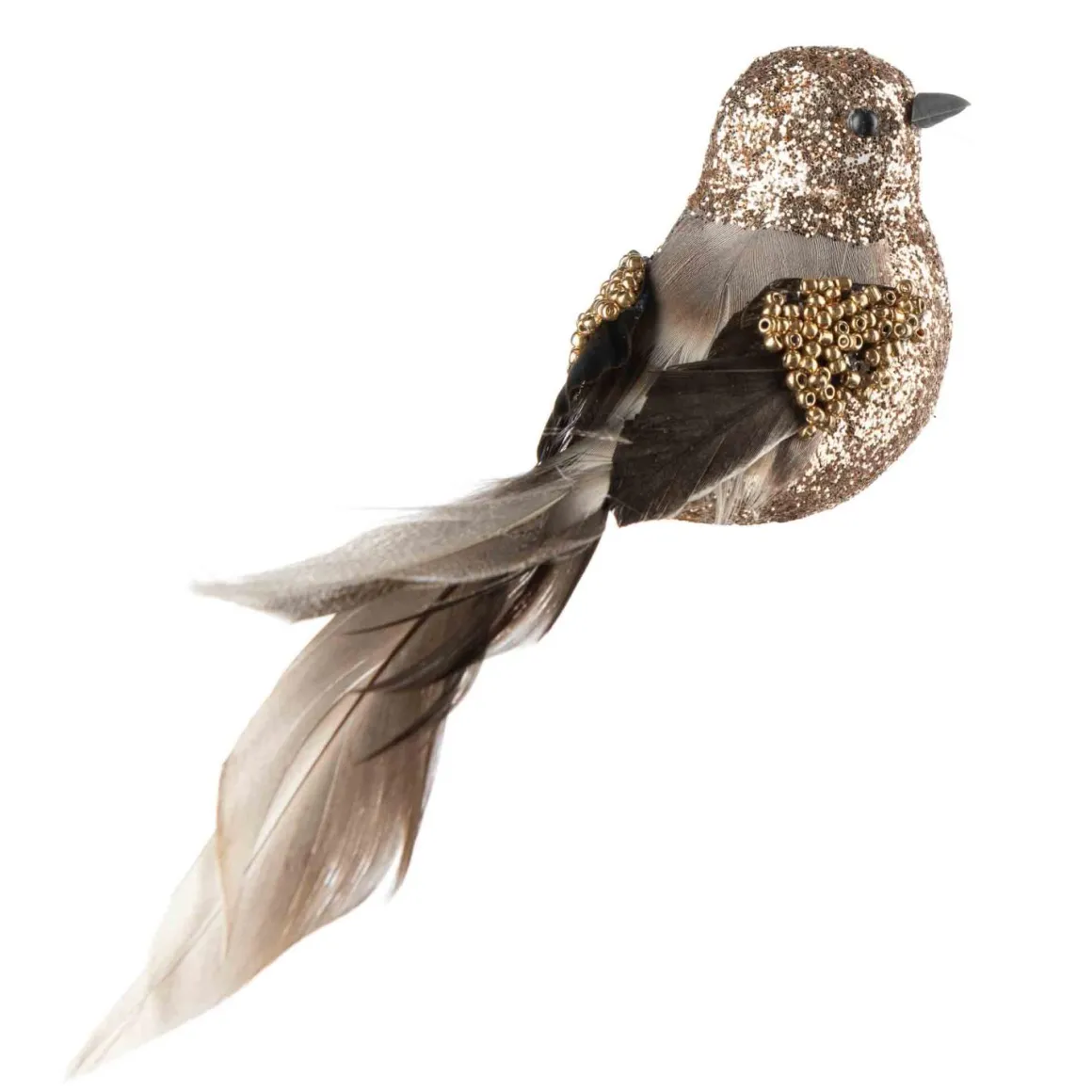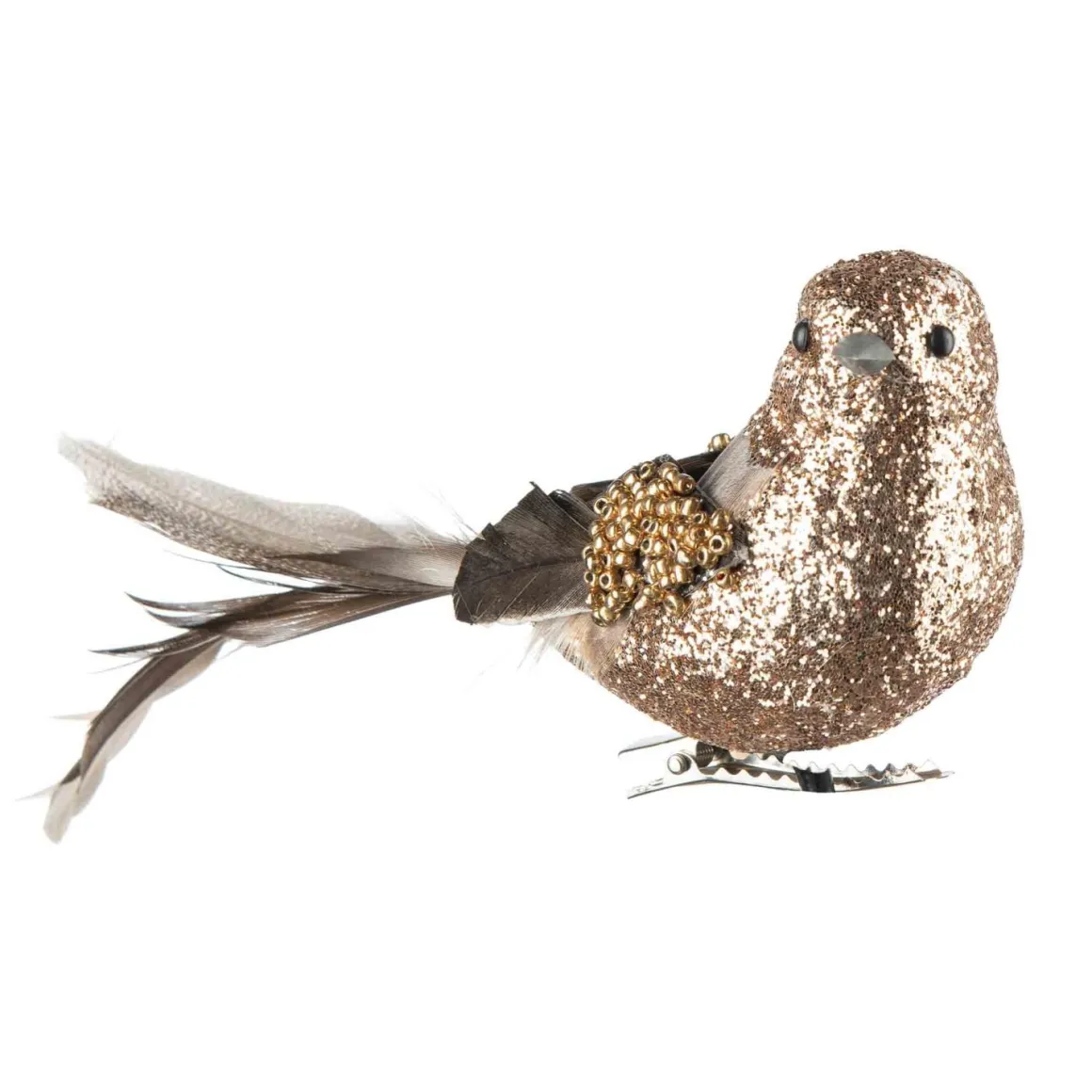 Lekker liten fugl med klype som kan festes på hva enn du måtte ønske. Brun fugl med glitter og perler for en eksklusiv look. Passer perfekt inn sittende på en adventsstake eller sammen med julekulene dine på juletreet.