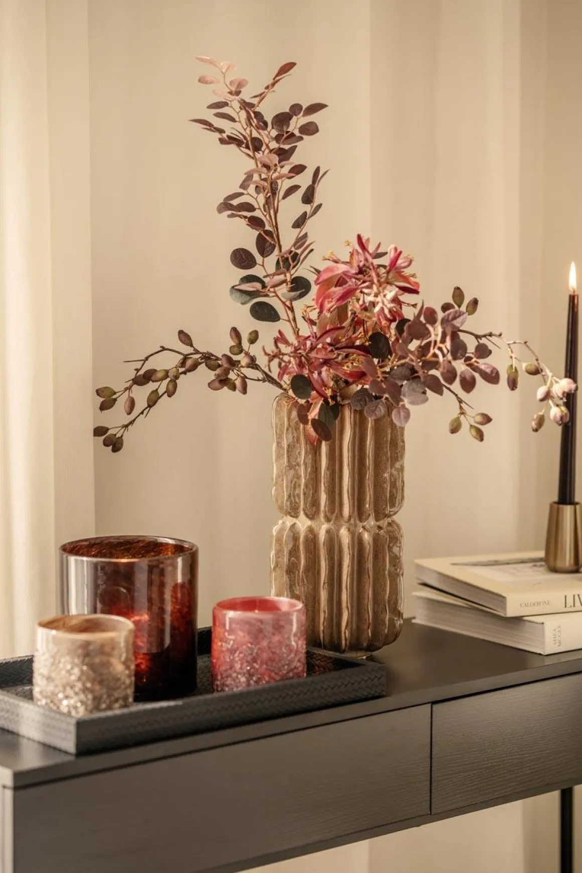 Grenen har fine, mørke blader i duse nyanser som gir ro til rommet. Den kan gjerne stå alene, men trives også sammen med andre i høstens farger. Passer godt i runde med smal åpning eller som en del av en lun borddekorasjon.