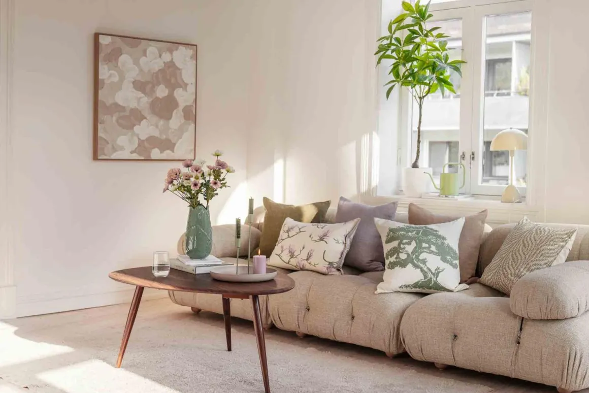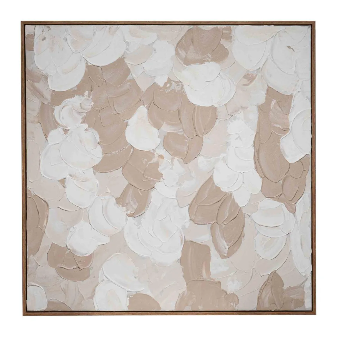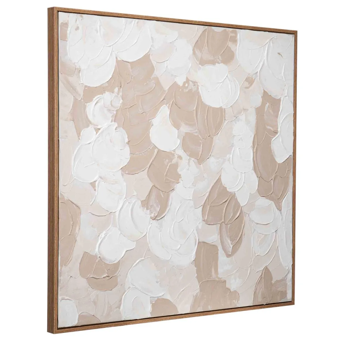 Dette bildet har struktur i beige og hvite nyanser. Det gir en stilren, men moderne look som passer godt inn på stua eller soverommet. Det kommer med trerammen, så det er bare å henge på veggen!