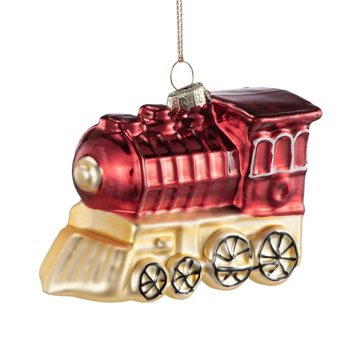 Juletrepynt formet som et lite damplokomotiv i rødt og gull gir treet et nostalgisk uttrykk. Perfekt for deg som liker pynt med personlighet og barndomsminner. Kombiner gjerne med andre figurer og fra vårt sortiment for en gjennomført julefølelse.
