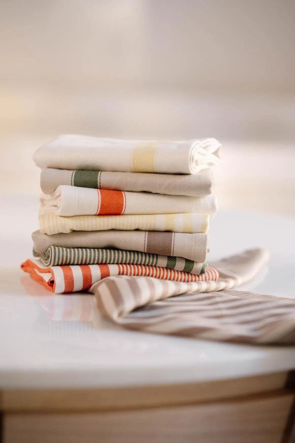Sett med to kjøkkenhåndklær som kombinerer funksjonalitet og stil. Med tidløse striper i naturlige fargetoner passer de både til klassiske og moderne kjøkken. Perfekte for å tørke oppvask, tørke hender, eller som en enkel detalj for å løfte kjøkkenets uttrykk. For et helhetlig preg, kan disse kombineres med grytekluter og bordtekstiler fra vårt sortiment.