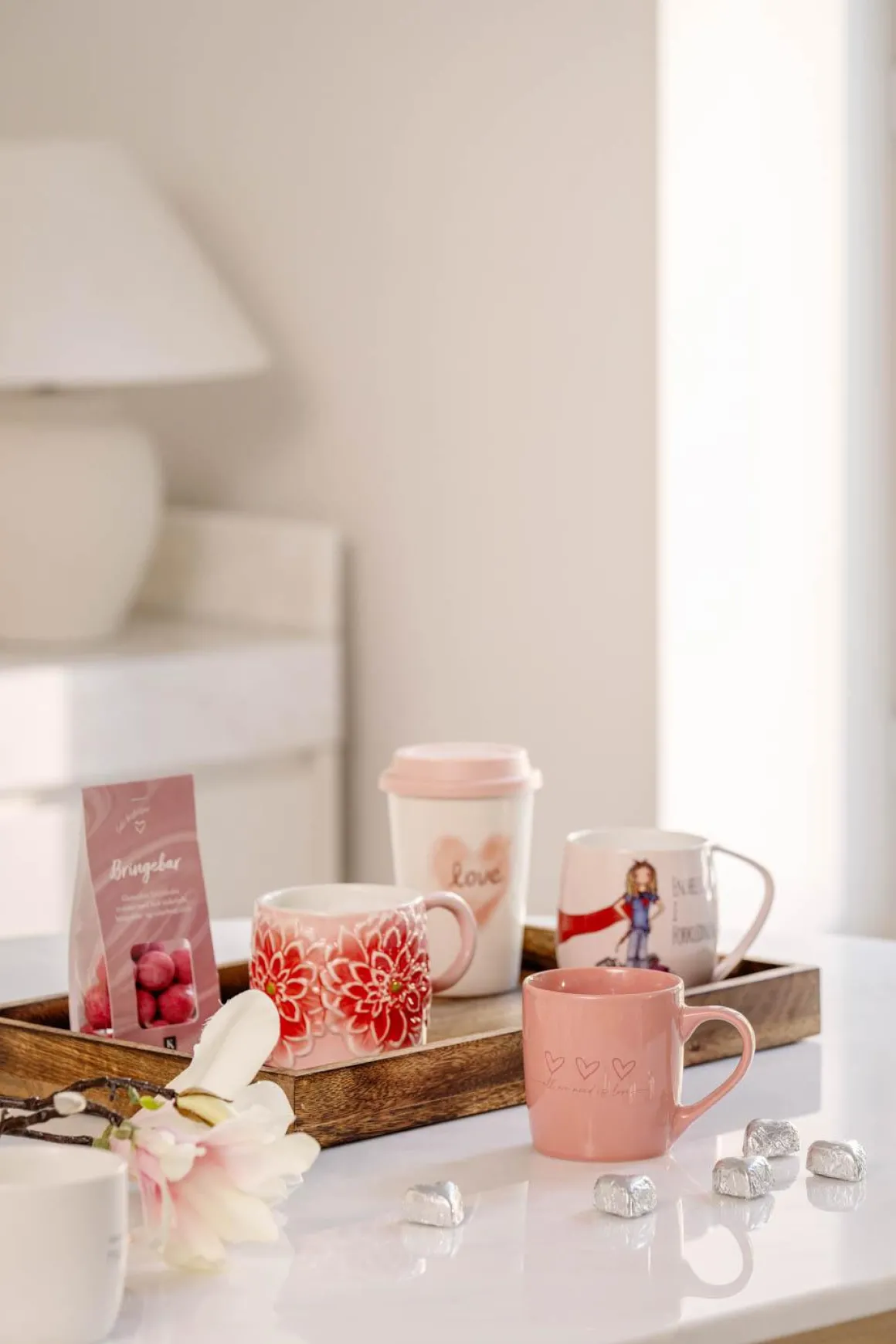 Start dagen med te eller kaffe i en kopp som sprer varme og kjærlighet. Den delikate teksten «Mum» og «love» gjør den til en perfekt gave til en som fortjener en liten hverdagsglede. Kombiner gjerne med noe godteri for å lage en koselig gavepakke. Passer fint både til frokostbordet og som et lite personlig innslag på kjøkkenhyllen.