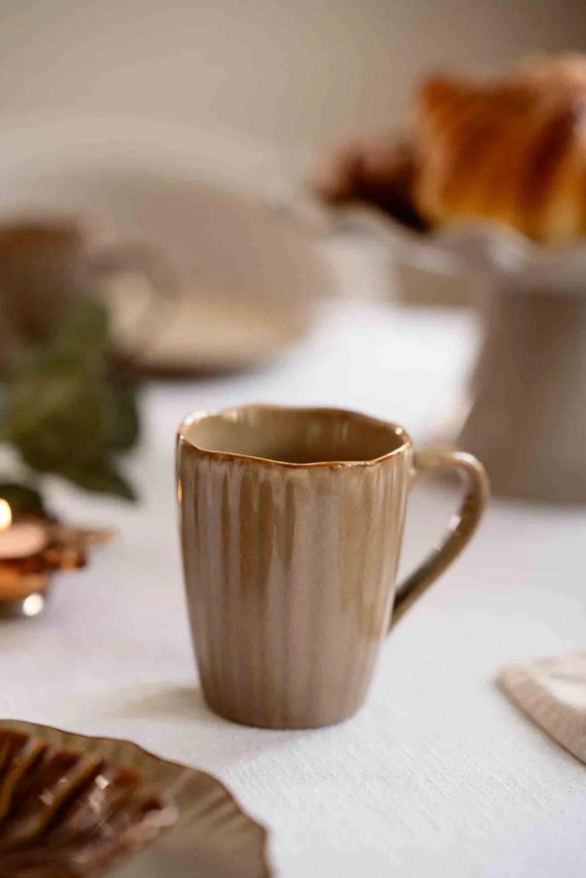 Dekk bordet med denne lekre koppen. Bloom-serien er et lunt og vakkert servise i lys brun. Serviset har elegante riller langs ytterkanten og en mørkere, bølgete brun kant som gir det en unik karakter. Bloom-serviset passer like godt til frokost som til middag. Se hele Bloom-serien og skap en harmonisk helhet på spisebordet med dette serviset.