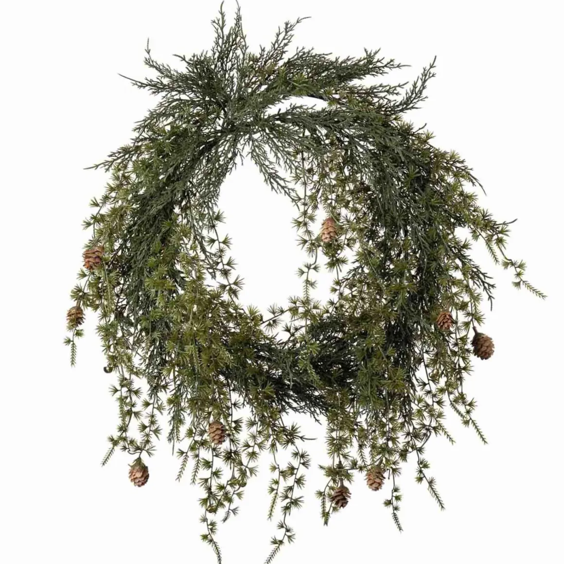 Gi hjemmet ditt en frisk, naturlig julestemning med denne julekransen! Perfekt på dør, vegg eller som borddekorasjon. Utforsk også vårt for flere dekorative detaljer som gjør sesongen ekstra hyggelig.