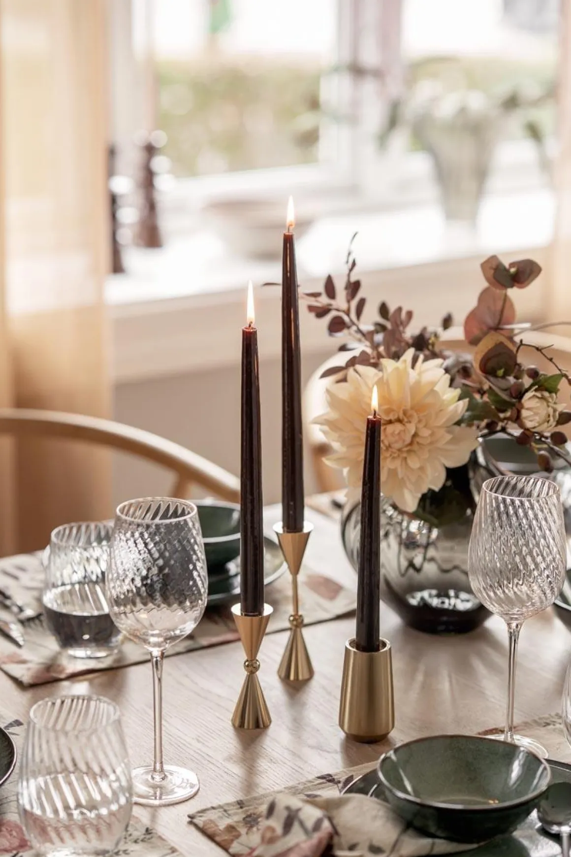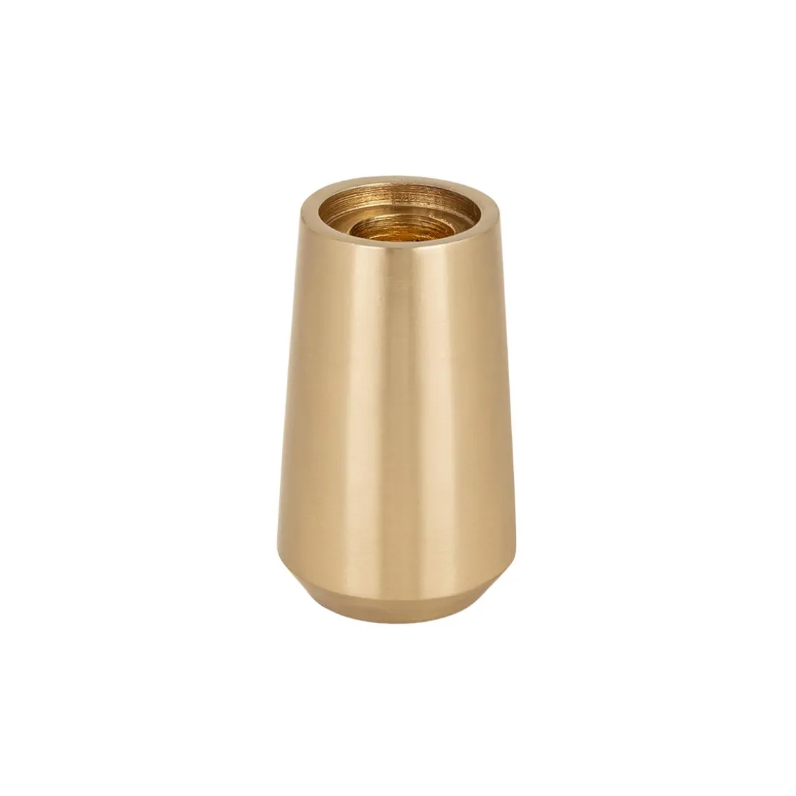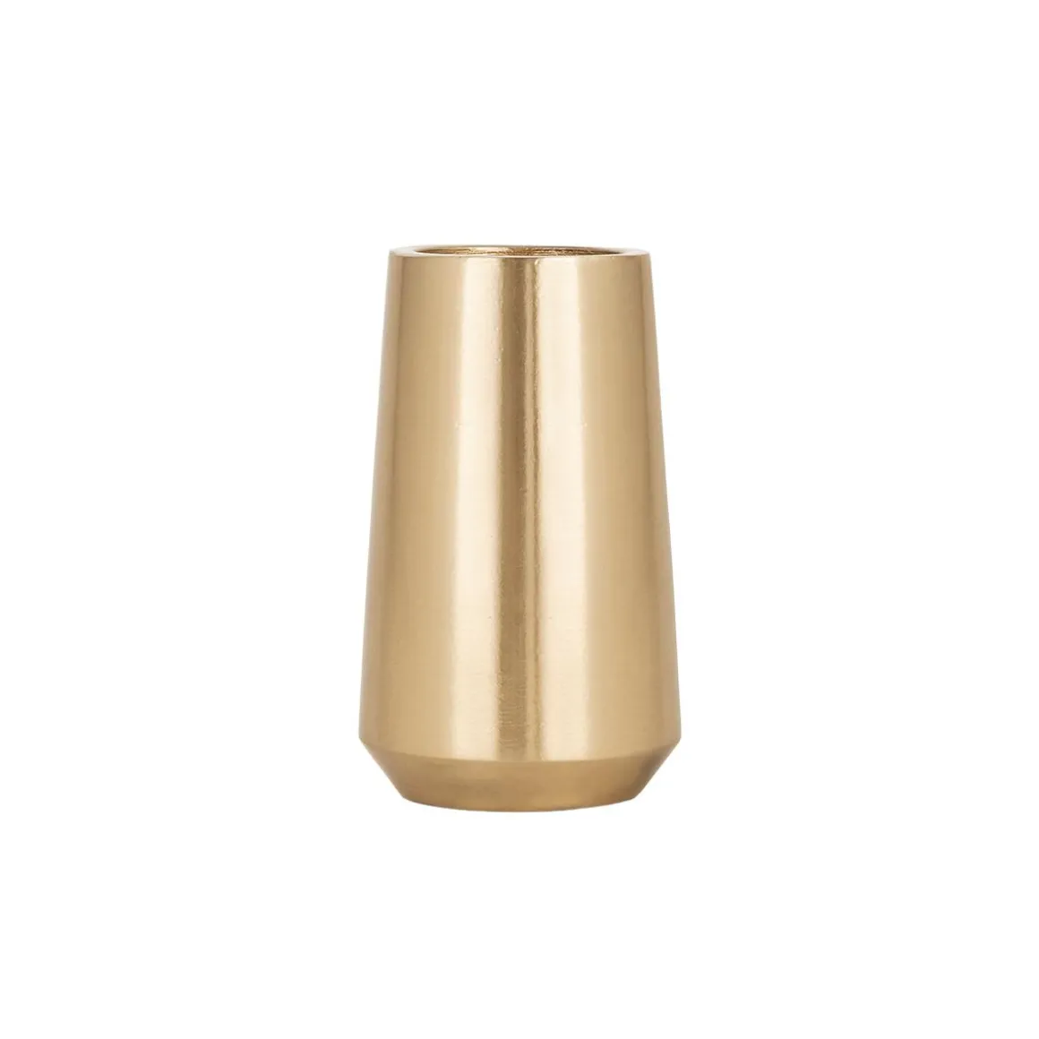 Lysestaken i metall har en høy og smal form som gjør den fin både alene og i gruppe. Den gyldne overflaten gir et varmt uttrykk. Kombiner den med og lysestaken i .