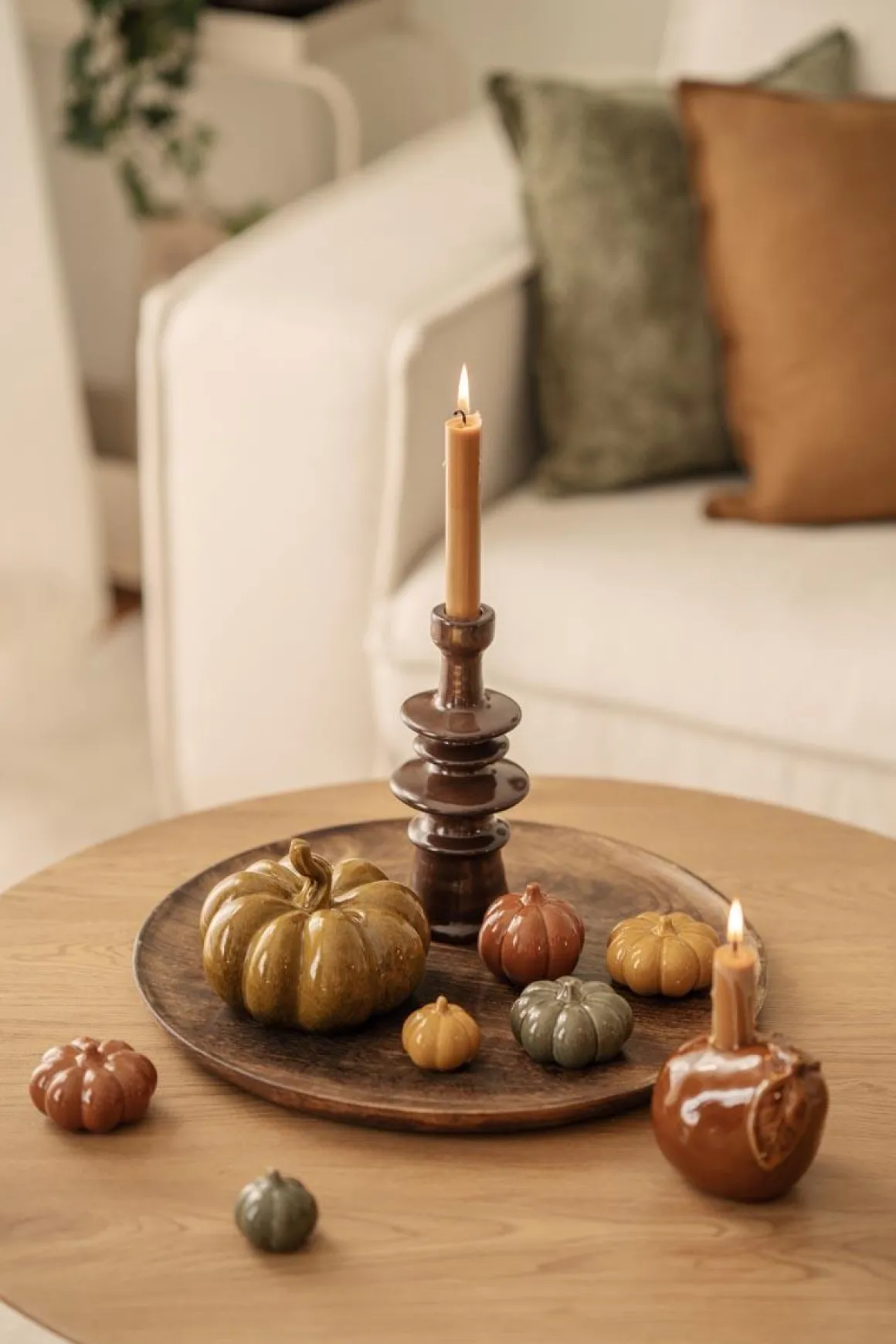 Kronelysestaken har en leken form og en lun fargetone som gir borddekkingen karakter. Den passer godt sammen med n for å skape høydeforskjell, eller kan kombineres med lyslykter i mørkt glass for et varmt og stemningsfullt uttrykk.