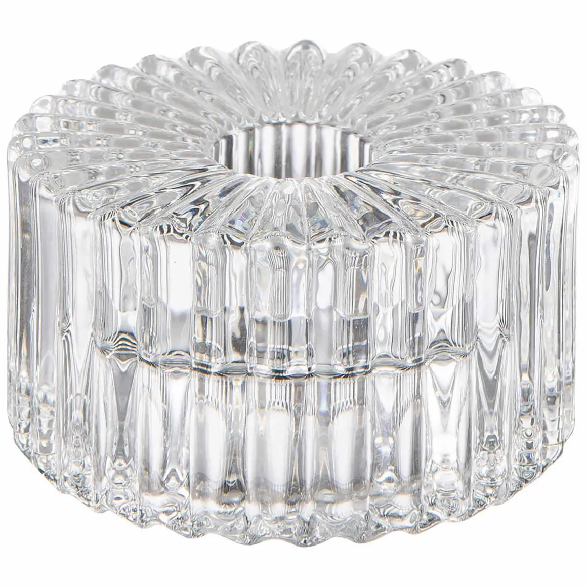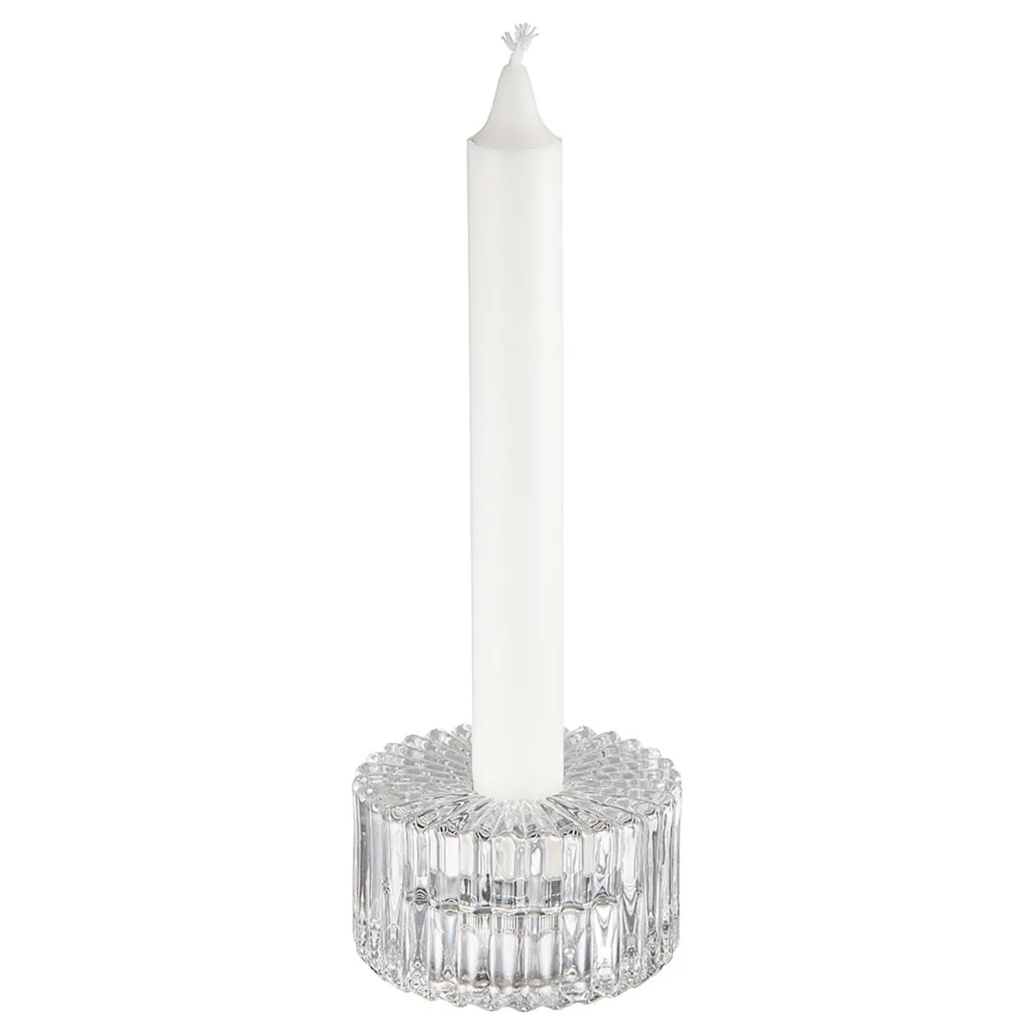 Supersøt kombi lysestake i klart glass som både kan brukes som telysholder og til kronelys hvis du snur den. Smart, ikke sant?