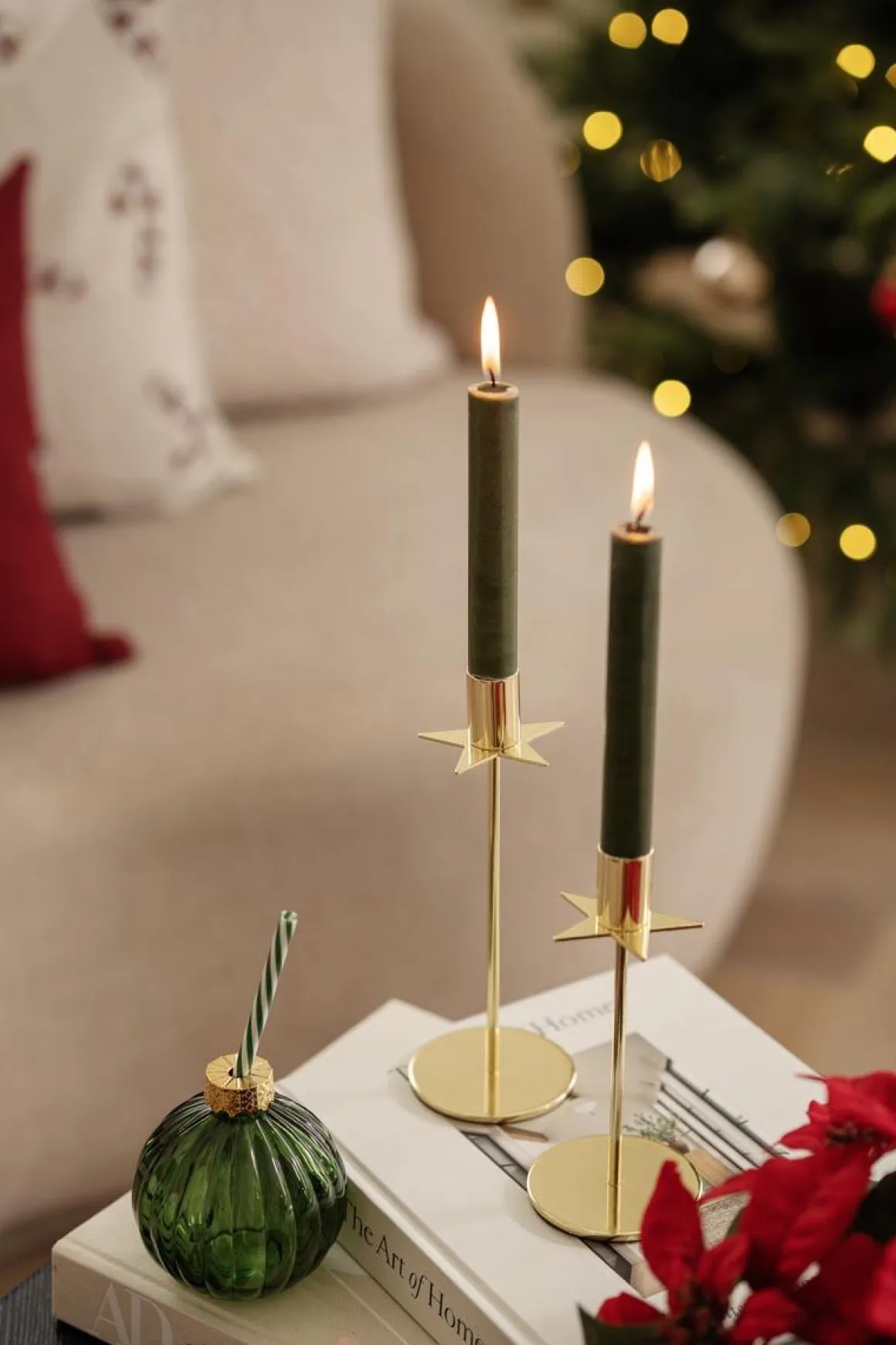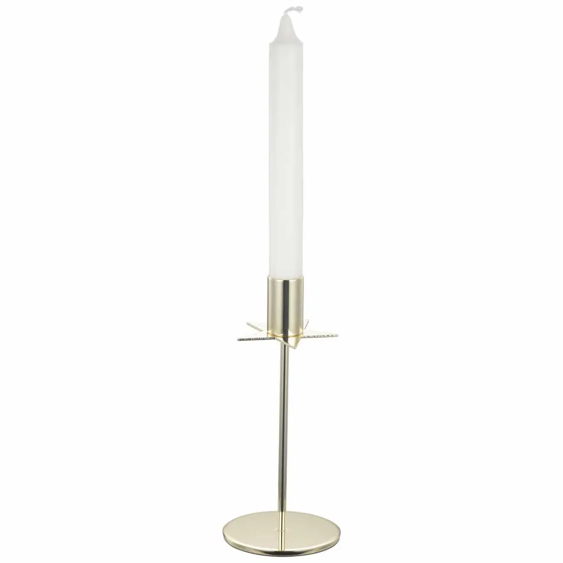 En elegant lysestake formet som en stjerne i gull som sprer varme og glød. Perfekt til å skape et festlig og sofistikert preg i hjemmet. Kommer også i en