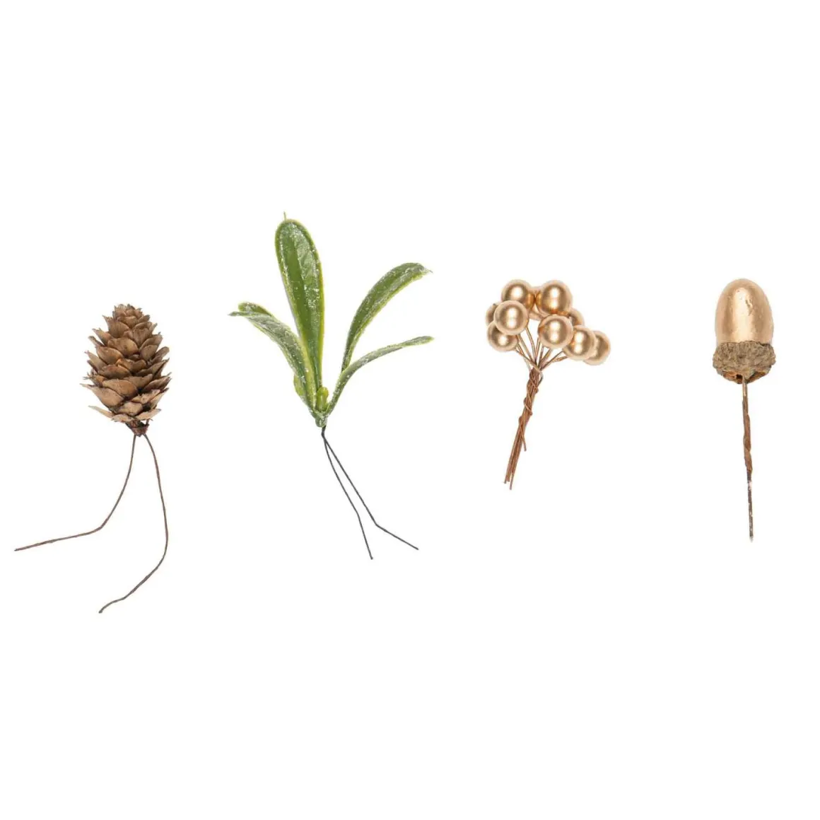 Pynt festbordet eller lysfatet denne sesongen med eikenøtter og bær i gull, kongler og grønne blader. Kjempe lekker dekor som gir et preg av natur i hjemmet.
