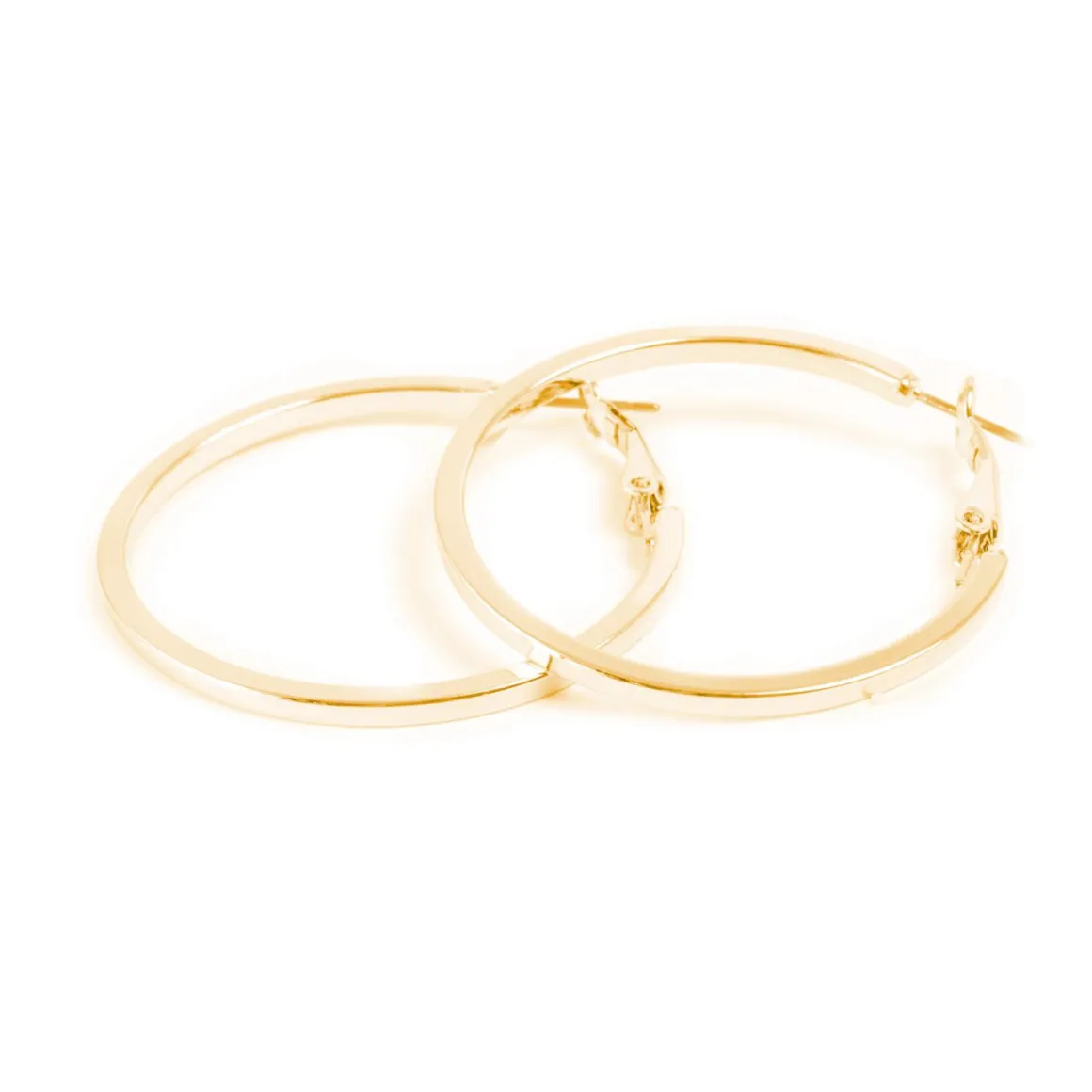 Enkle øreringer i en blank gullfarget firkantprofil med en god klypelås som er lett å ta av og på. Kommer i flere størrelser, disse er de store.