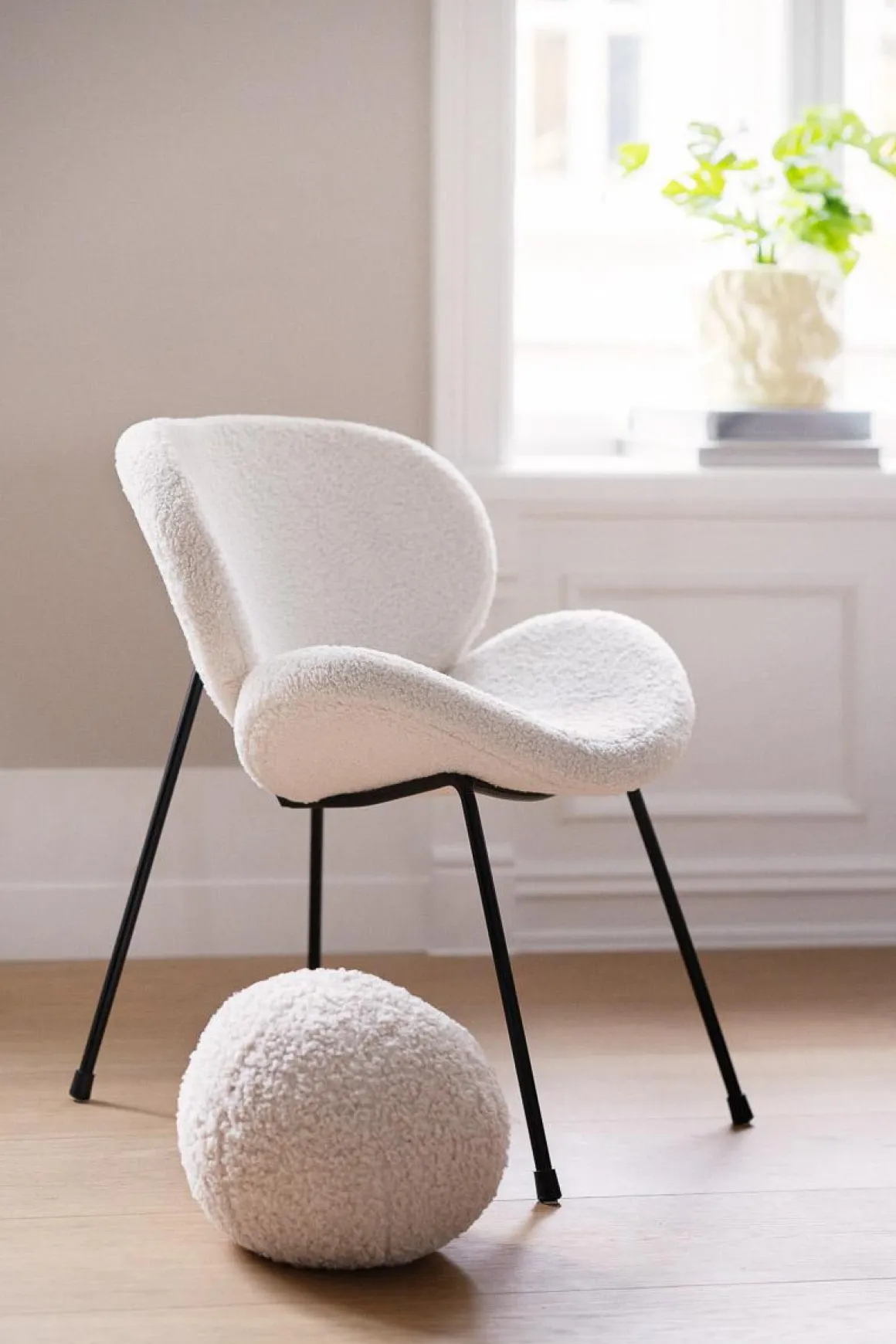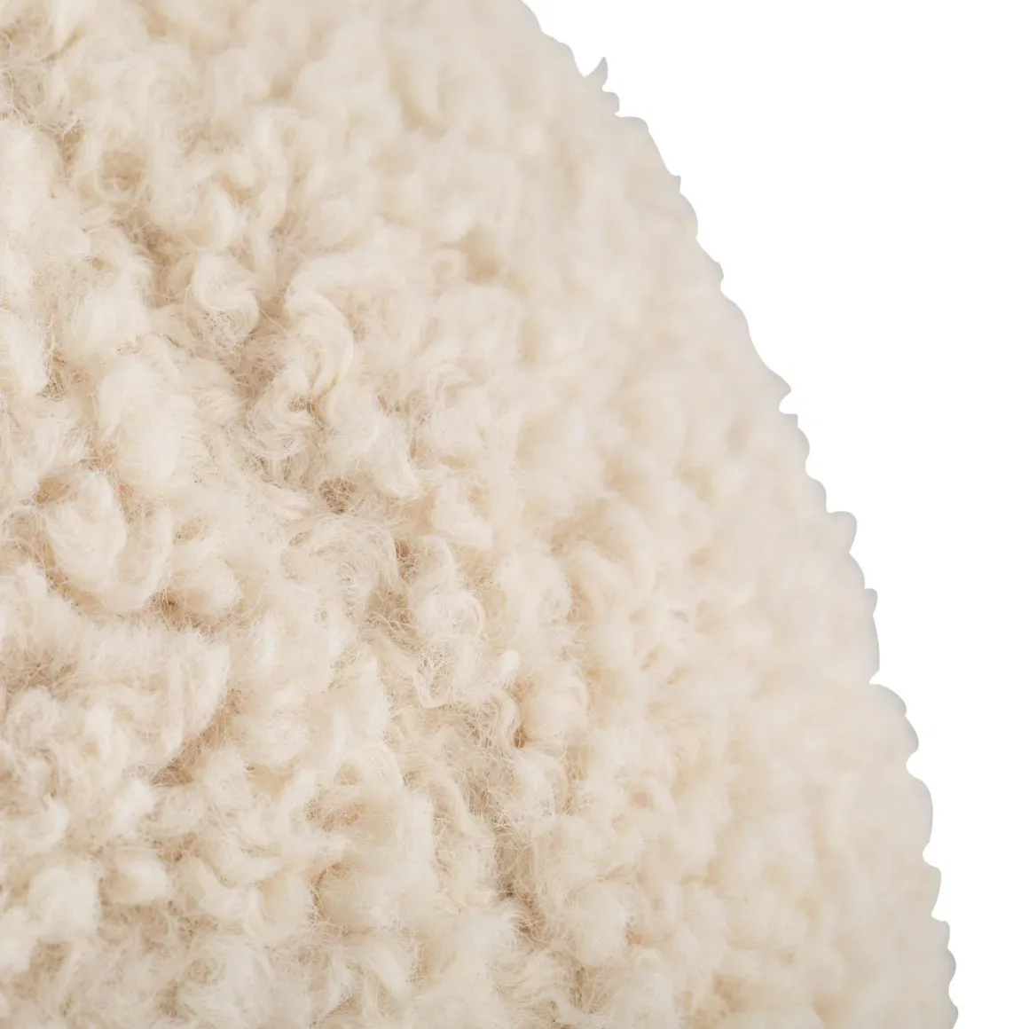 Rund, hvit og trendy teddypute. Miks puten med andre farger og fasonger.