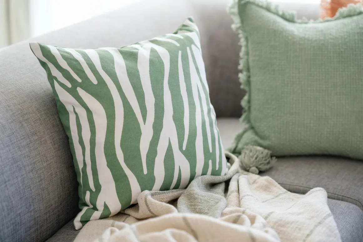 Pute med sebramønster i sommerens trendy grønnfarge. Frisk opp interiøret og sofaputene med nye lekre farger!