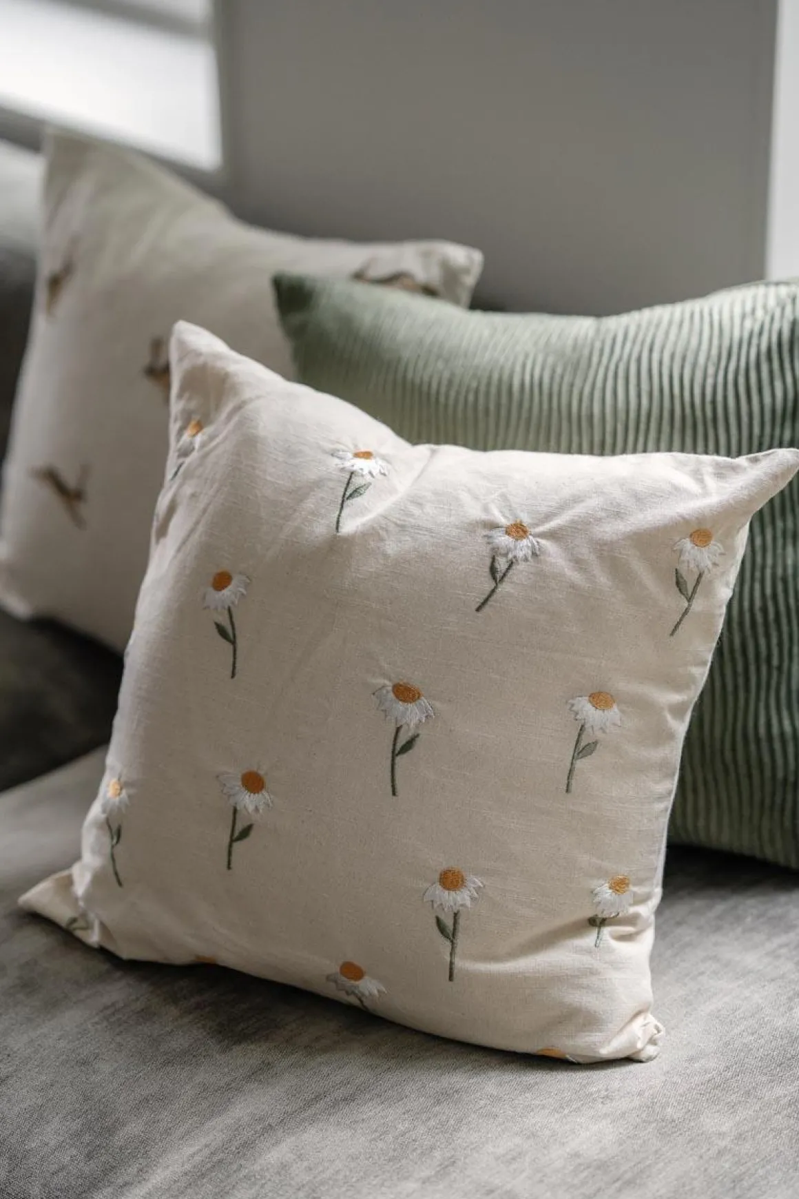 Søtt putetrekk med sitt enkle, men livlige design gir et friskt pust til enhver stue eller soverom. Med vakre blomsterbroderier sprer det glede i sofaen eller i lesekroken. Perfekt for å få litt ekstra varme og lys i hjemmet, og kanskje et fint komplement til andre blomstrete tekstiler.