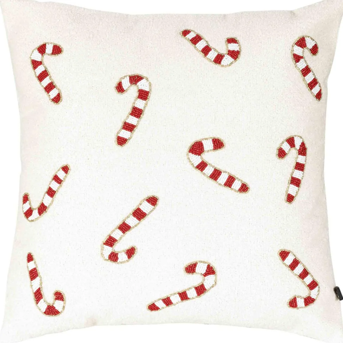 Dette putetrekket i hvitt med lekre candycanestenger og perledetaljer gir stuen et festlig og søtt julepreg. Kombiner den med andre for å skape den ultimate julestemningen!