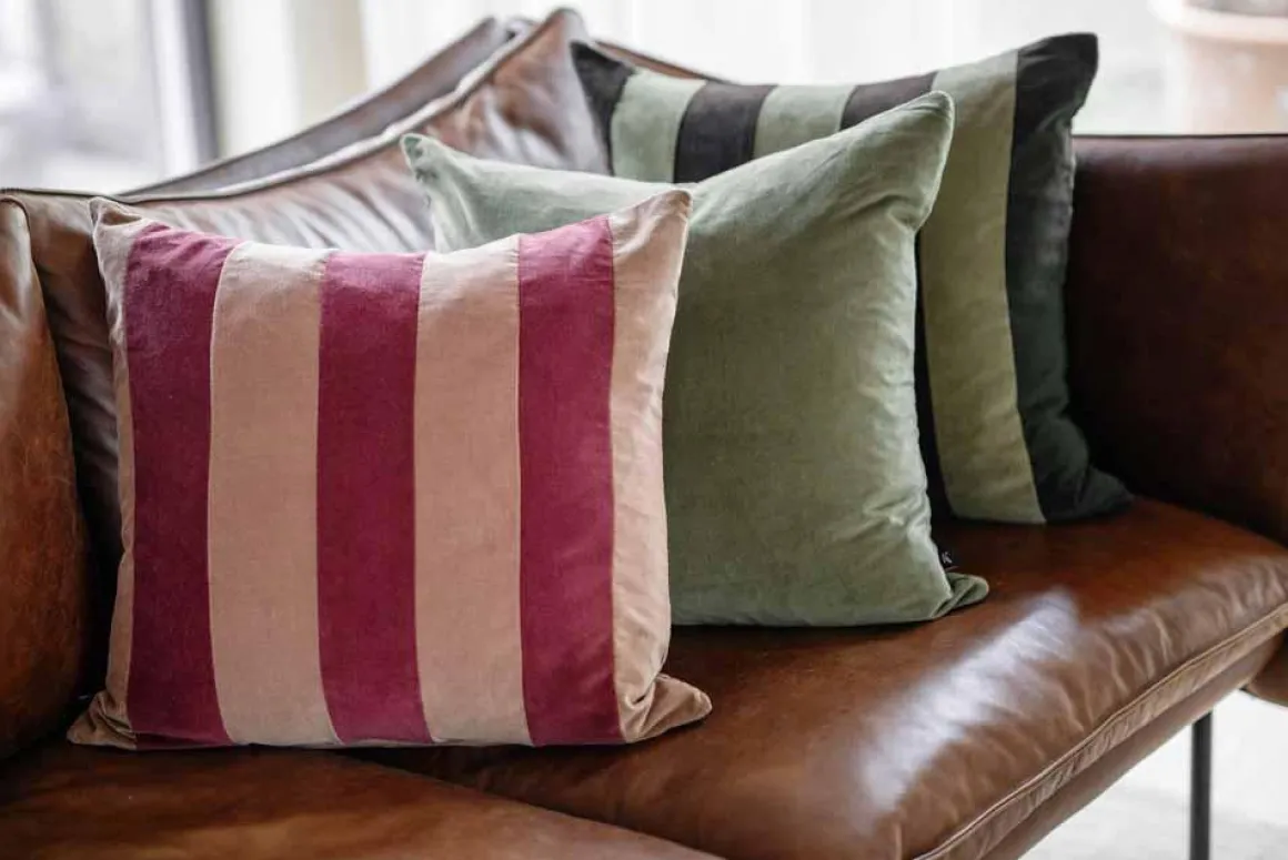 Putetrekk i velur med stripete mønster. Miks putene av forskjellig materialer og farger, og skap den riktige stilen til ditt hjem.