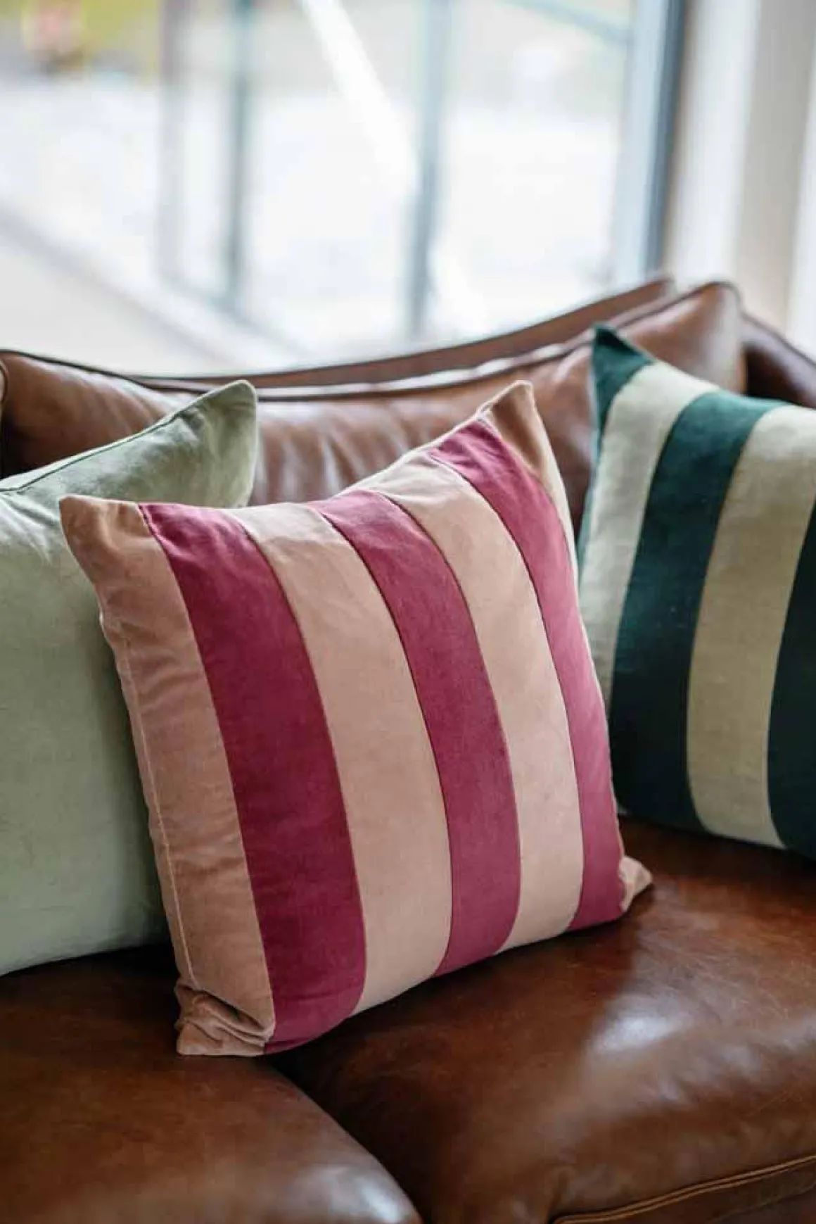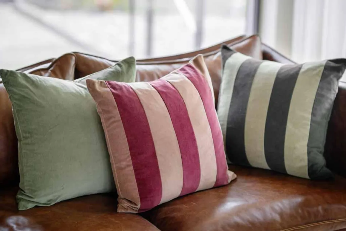 Putetrekk i velur med stripete mønster. Miks putene av forskjellig materialer og farger, og skap den riktige stilen til ditt hjem.