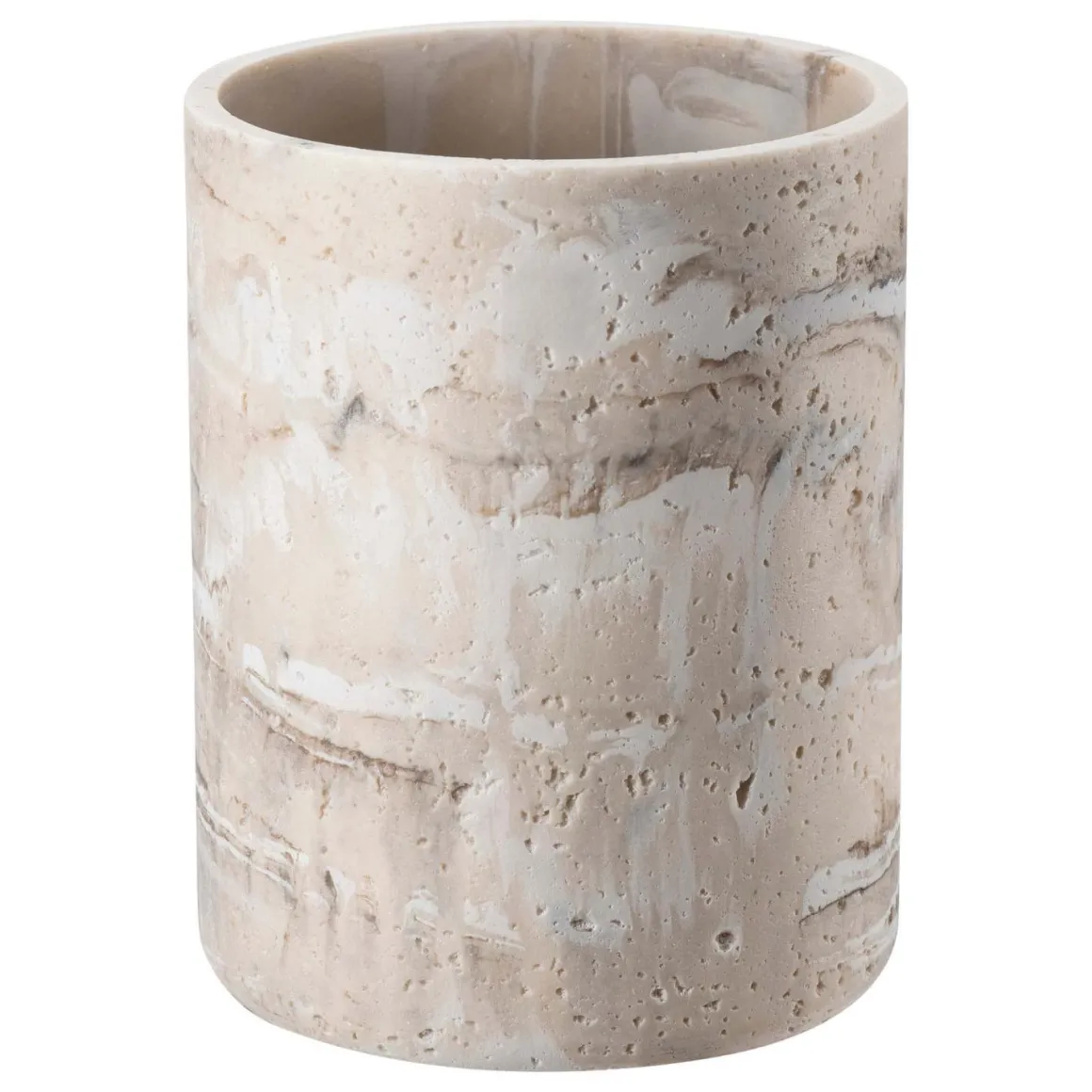 Denne dekorative krukken i beige marmorfinish er perfekt på kjøkken benken. Passer perfekt til å oppbevare kjøkkenredskap. Fullfør stilen sammen med Såpedispenser m/fat Helene, denne finner du