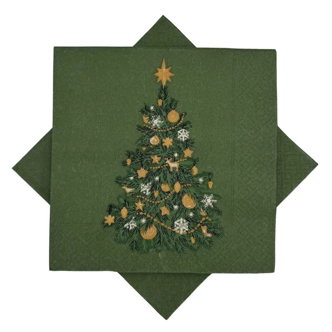 Disse grønne serviettene med et dekorativt juletremotiv er et hyggelig tillegg til julebordet. Perfekte til både store og små sammenkomster, gir de et ekstra festlig preg til måltidet.