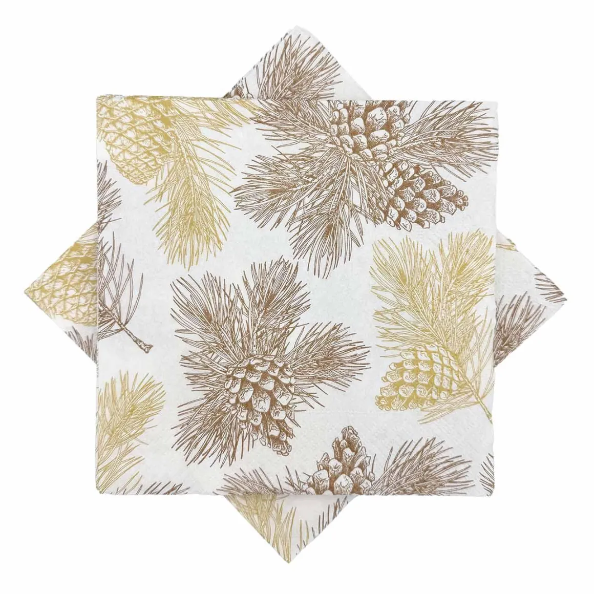 Disse papirserviettene har et flott motiv av kongler og furukvister, perfekt til å dekorere bordet i juletiden. De gir en naturlig og vinterlig følelse til måltidet, og passer godt til både hverdags og fest.