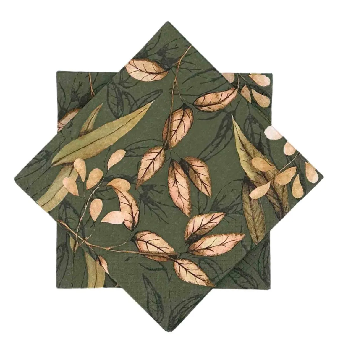 Inviter naturens friskhet inn i ditt hjem med disse vakre grønne serviettene med bladmotiv. Motivet av blader gir en frisk og innbydende atmosfære som passer perfekt til både intime middager og store sammenkomster.