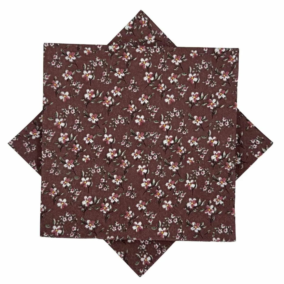 Delikat bordeaux serviett med små blomsterprint, som gir borddekkingen et feminint og elegant uttrykk. Sjekk ut alle våre servietter