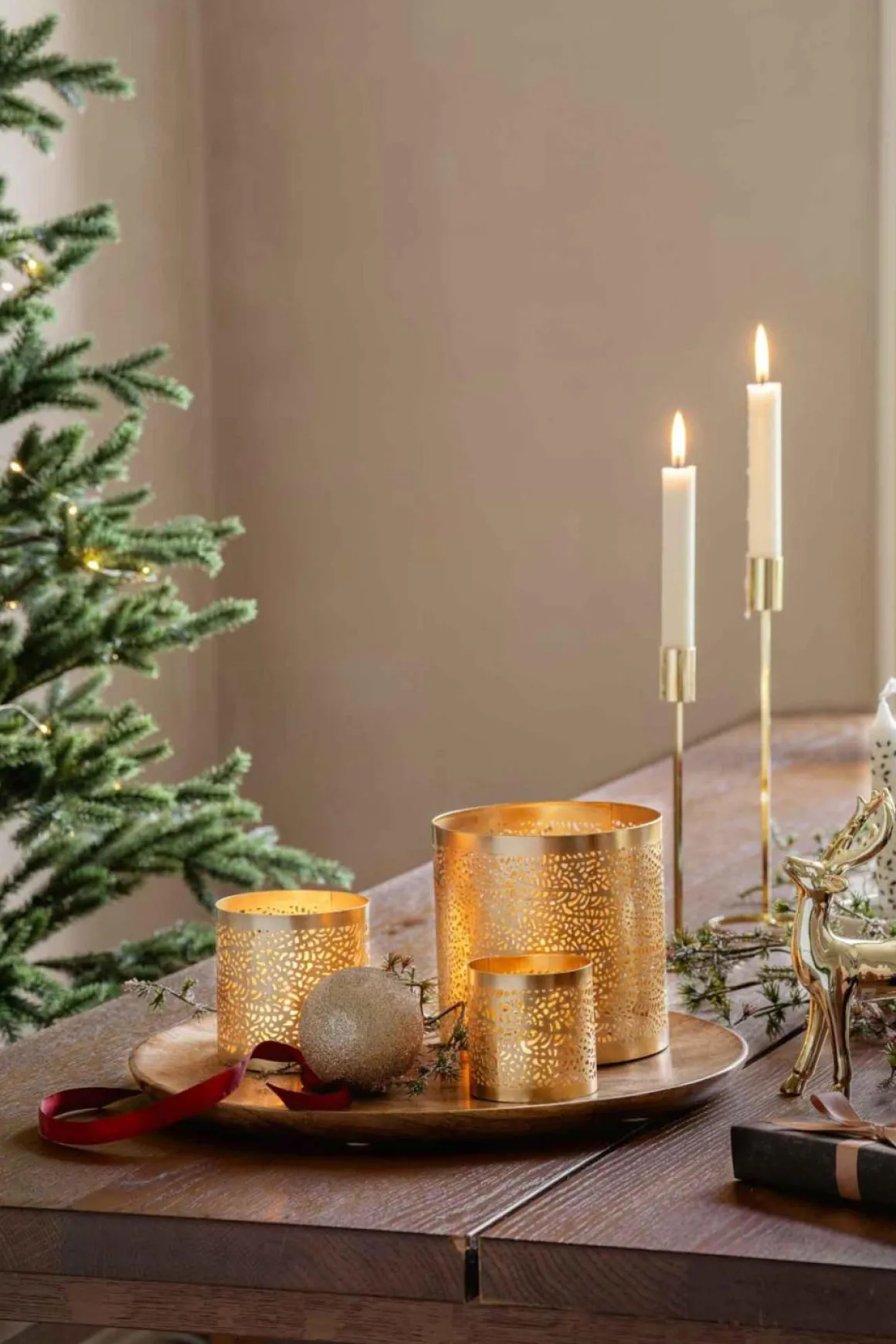 Vår flotte telysholder Ylva i børstet gull med mønster som er nydelig når lyset brenner! Her får du et sett med tre ulike størrelser som gir et veldig fint uttrykk, om det er på stuebordet eller vinduskarmen. Kommer i en fin gaveeske. Perfekt som vertinne-, bursdagsgave eller som en gave til seg slev!