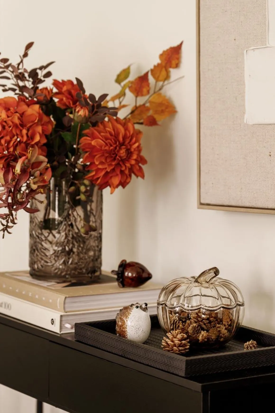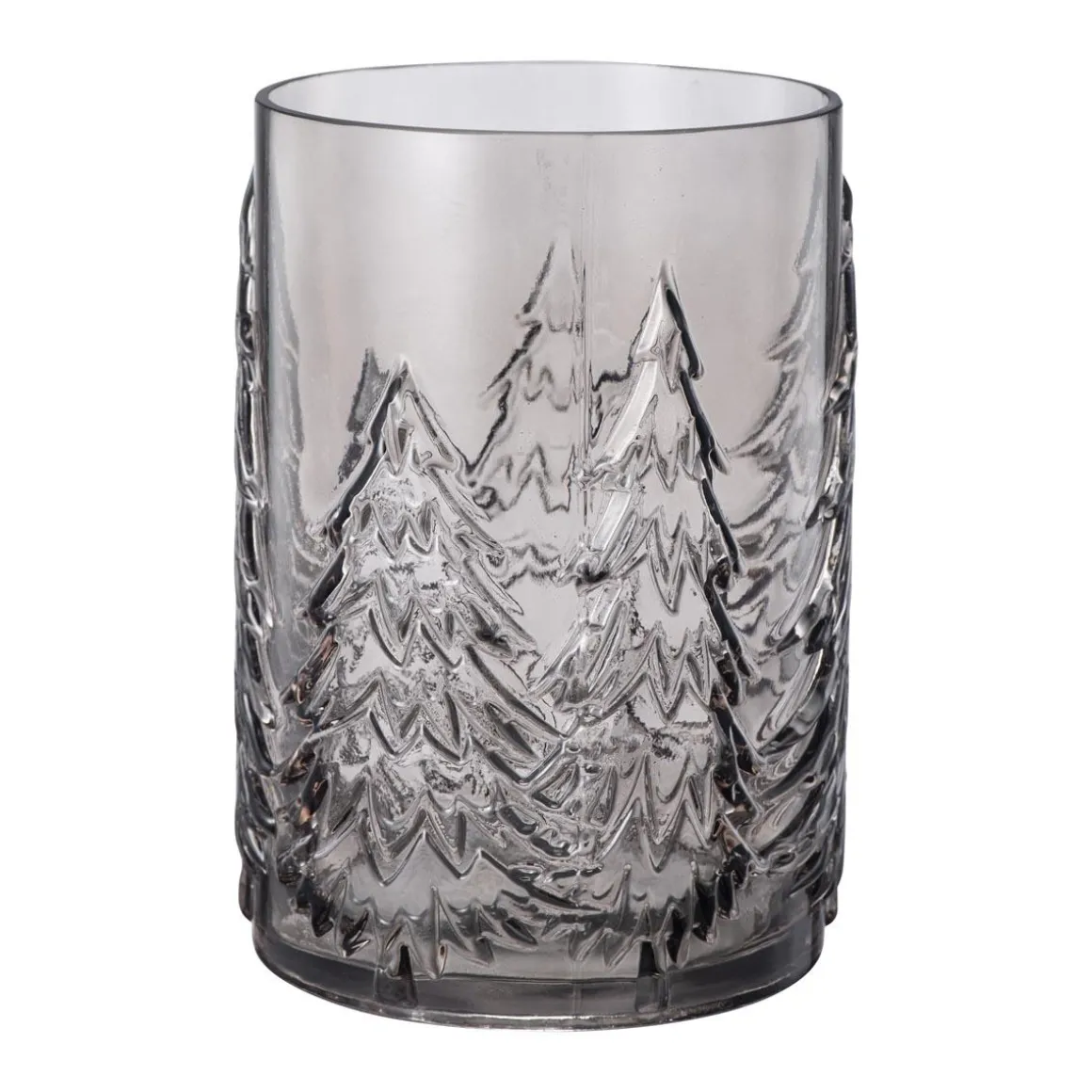 Glassvase med grantremønster som gjør seg fint i kombinasjon med . Ekstra fin sammen med i metall eller andre i mørkt glass.