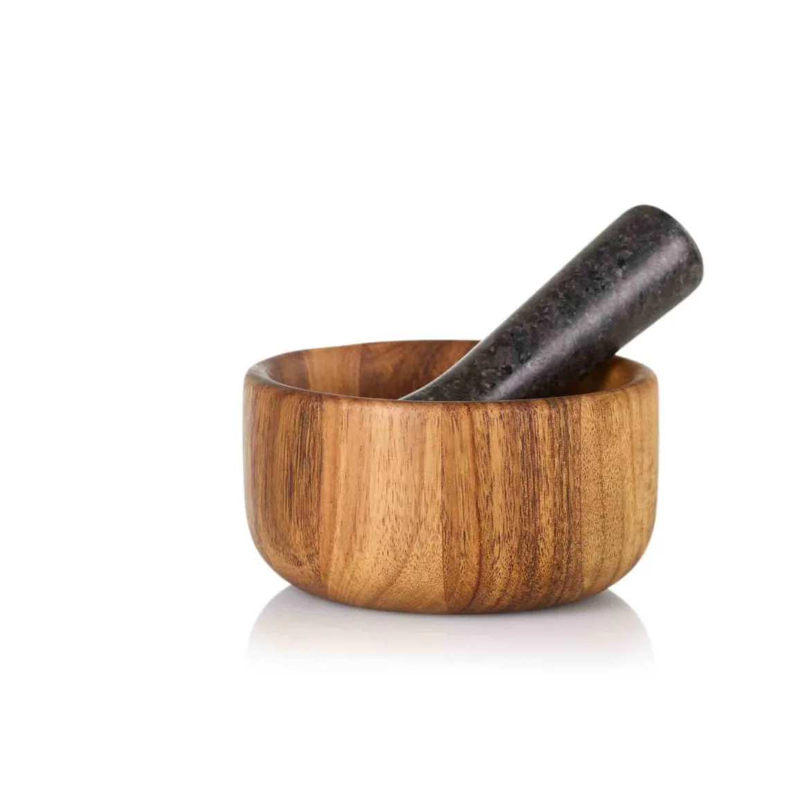 AdHoc Taru morter i tre med sort kvernepinne i stein kombinerer naturlig eleganse med praktisk funksjonalitet. Morteren er laget av høykvalitets tre, og den sorte kvernepinne i stein gir en robust og effektiv måte å male krydder, urter og andre ingredienser på.
