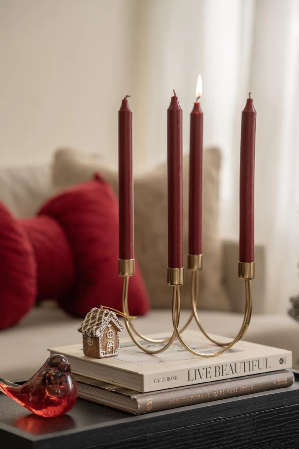 En sofistikert adventstake i gull som tilfører hjemmet et eksklusivt preg. Det tidløse designet og den varme gløden gjør den til et stemningsfullt midtpunkt i julen. Fyll den medfor å sette inn julestemningen!