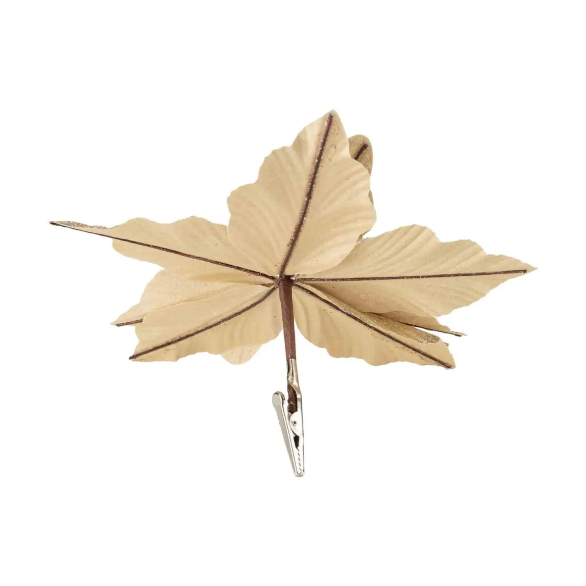 Legg til en touch av eleganse i ditt juletre med vår vakre blomst på klype i gull. Denne delikate juletredekoren kombinerer luksuriøs gullfarge med en naturlig blomsterdesign.