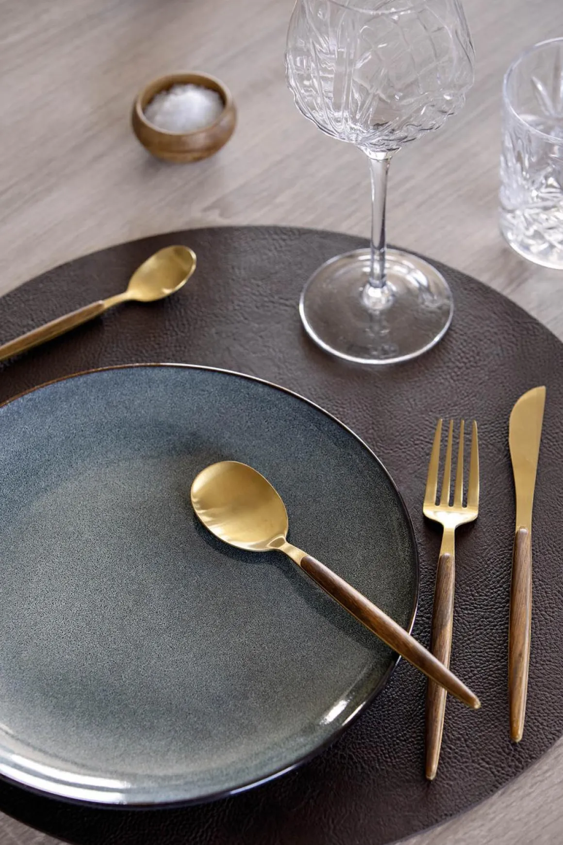 Lekker rund dekkebrikke, perfekt når borddekkingen trenger det lille ekstra. Dekkebrikkene er laget i imitert skinn og . Bordbrikken er enkel å holde ren.