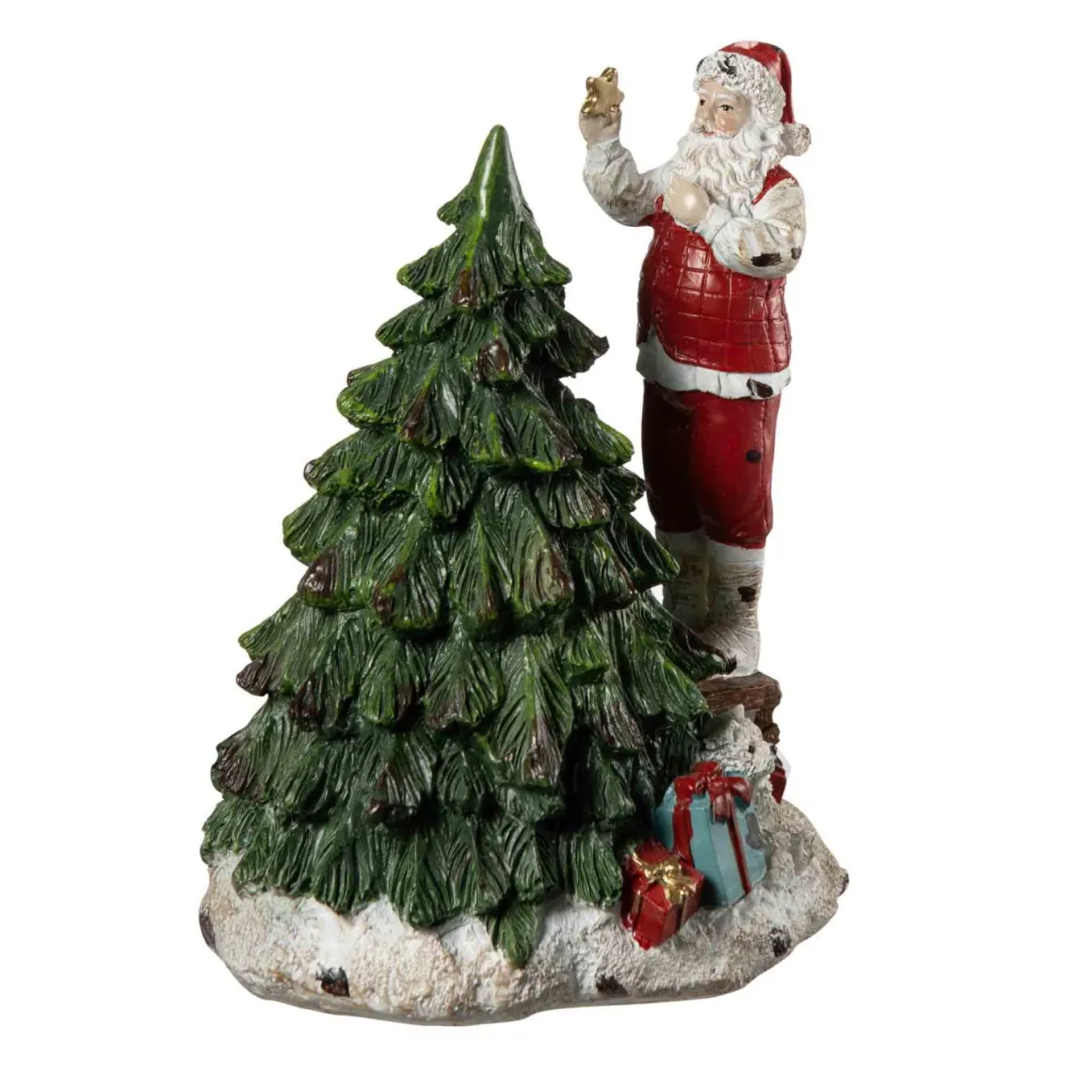 Dette fine dekortreet med julenisse gir en tradisjonell følelse av jul. Dekorfiguren av en julenisse som pynter treet, vil legge til en leken og festlig stemning til din juleinnredning.