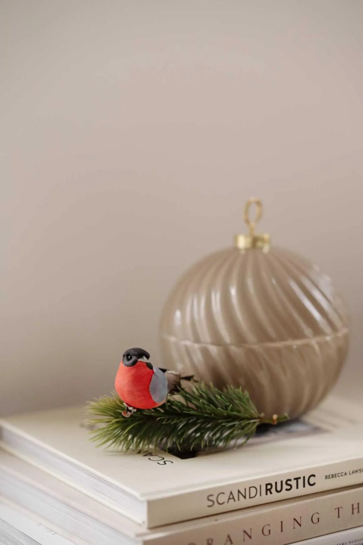 Pynt juletreet eller hjemmet ditt med denne skjønne dompap fuglen. Fest den på treet, eller kanskje på en ny dørkrans. Koselig fugl som kan klypes fast overalt en måtte ønske.