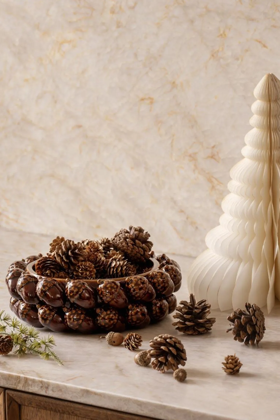 Dekorfat med unikt design og blank overflate i dype bruntoner. Perfekt til å samle lys, dekorasjoner eller småting på bordet. Skaper et lunt og stilfullt uttrykk i rommet.