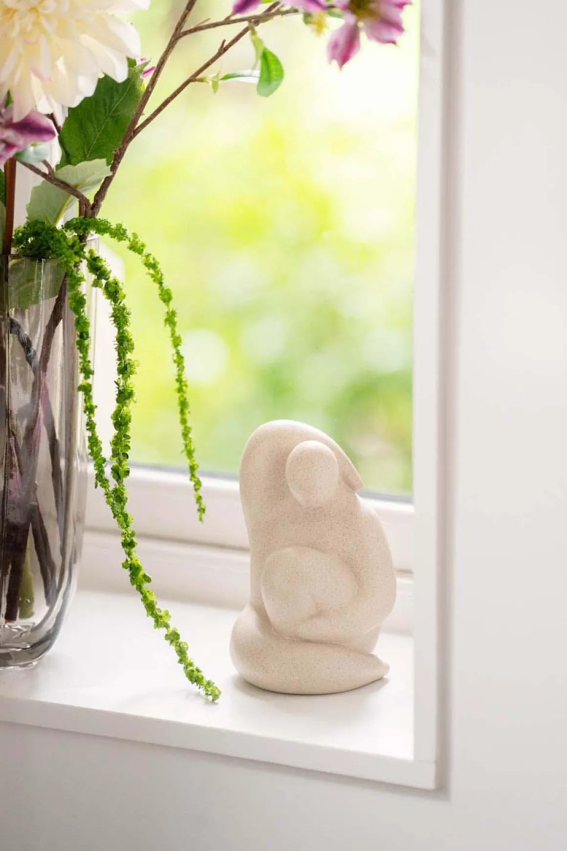 En skulptur som gir hjemmet et uttrykk av ro og harmoni. Formen og teksturen skaper en følelse av balanse og stillhet, perfekt på en hylle, i en vinduskarm eller som midtpunktet på et sidebord. Kombiner med en enkel vase i keramikk eller en lysestake for å fremheve en lun atmosfære.