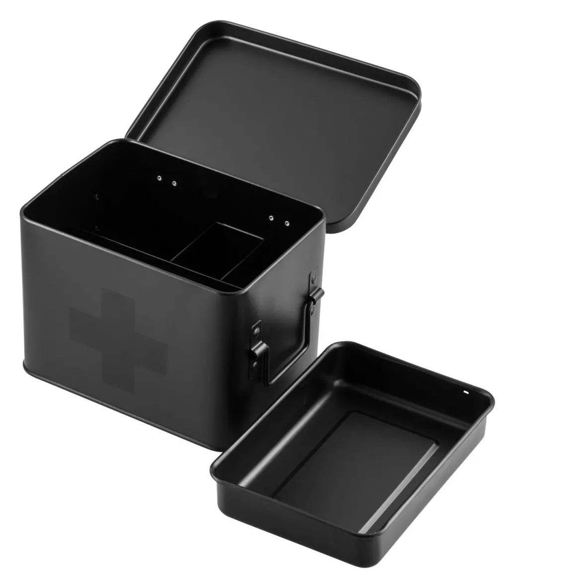 Dersom ulykken skulle være ute, er det smart å vite hvor du har det nødvendige av basis førstehjelpsutstyr hjemme. Denne kule sorte metallboksen er nettopp det du trenger til dette.