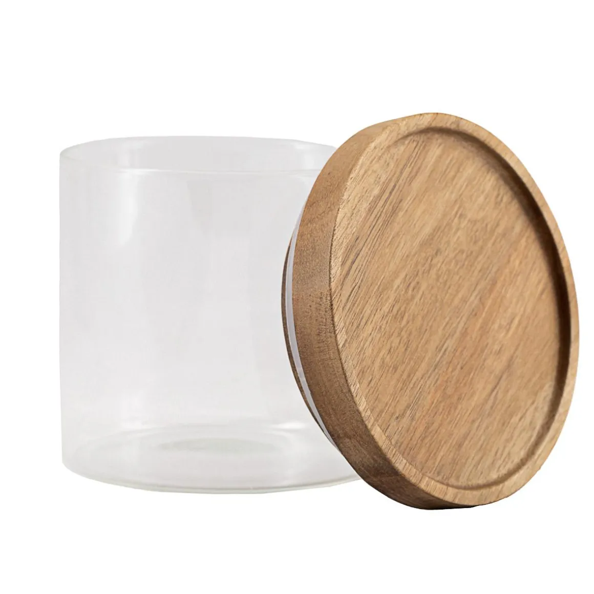 Praktisk og fin oppbevaringskrukke i glass og akasietre. Perfekt til oppbevaring av tørrvarer og lignende. Plasser sammen med for et komplett uttrykk.