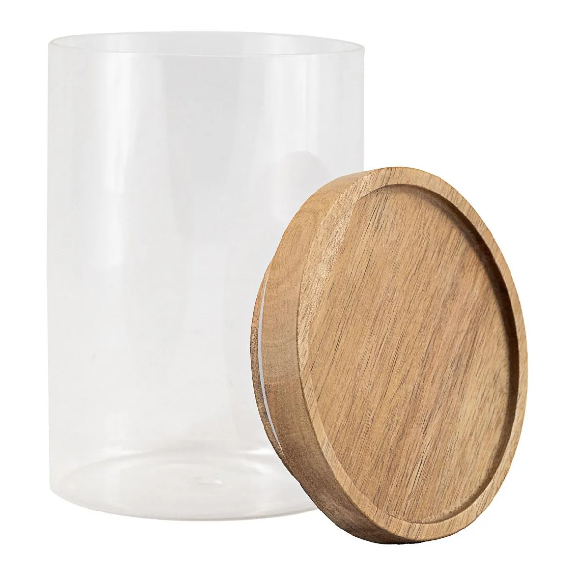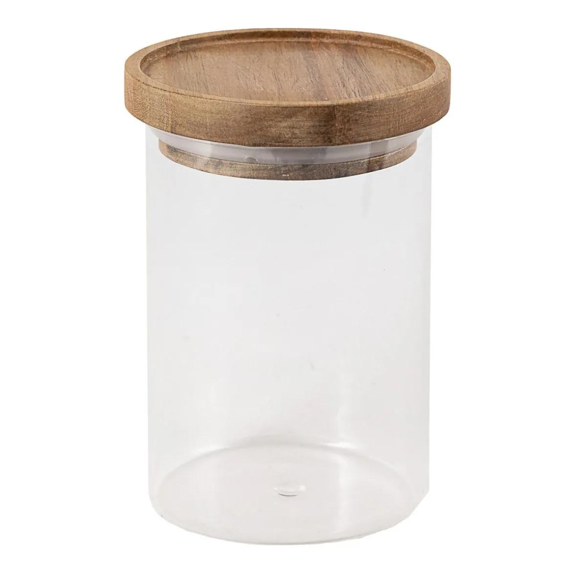 Praktisk og fin oppbevaringskrukke i glass og akasietre. Perfekt til oppbevaring av tørrvarer og lignende. Plasser sammen med for et komplett uttrykk.