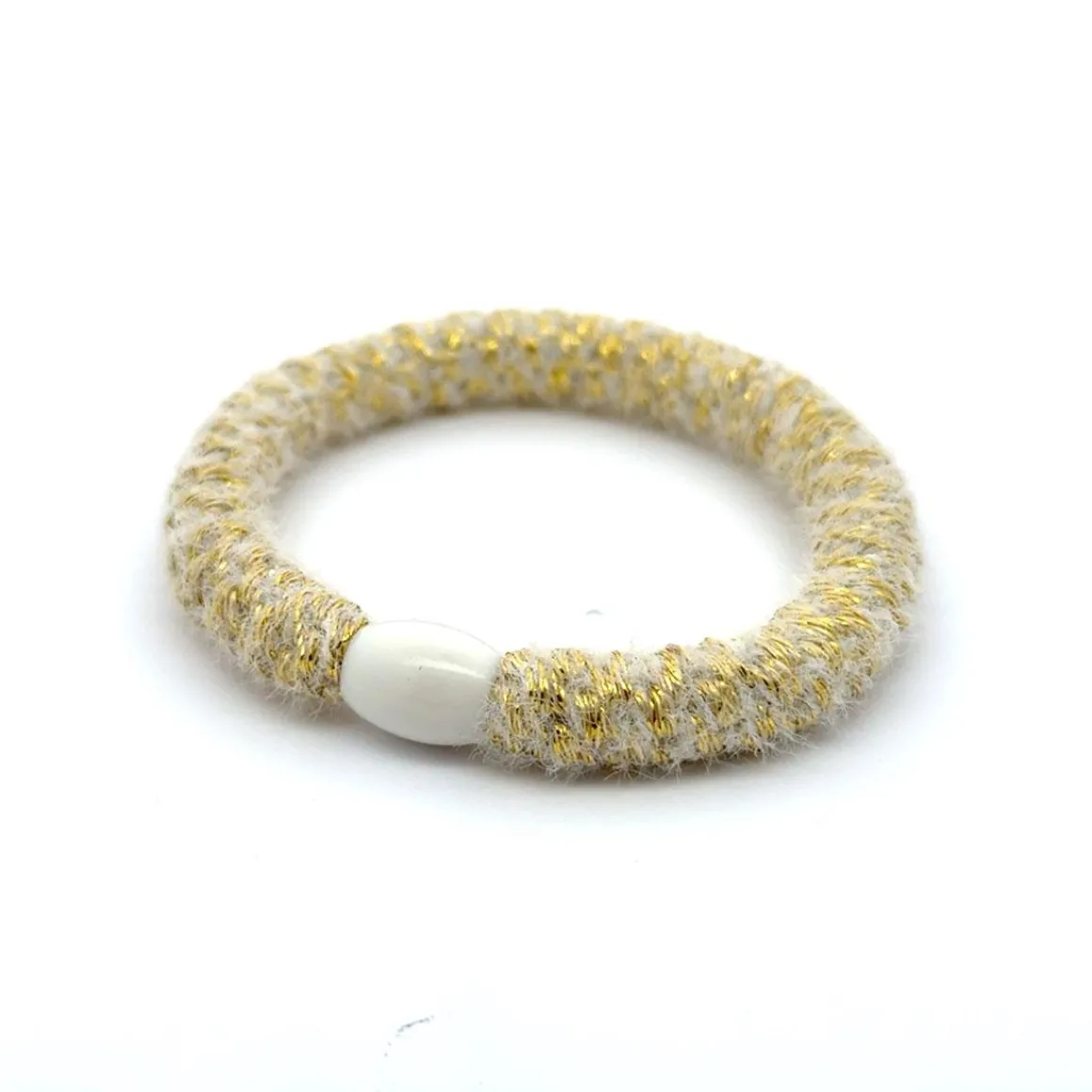 Fin hårstrikk i tvinnet mønster i fargene hvit og gull. Hårstrikkene fra A&C er i god kvalitet som varer lenge. .