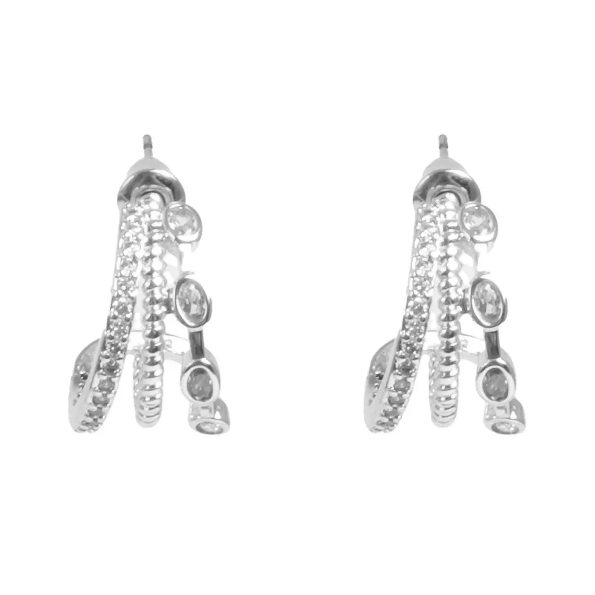 Tre raders ørepynt, belagt med sølv. Stilige former og lekre detaljer gjør denne ørepynten til et lite statement i seg selv.