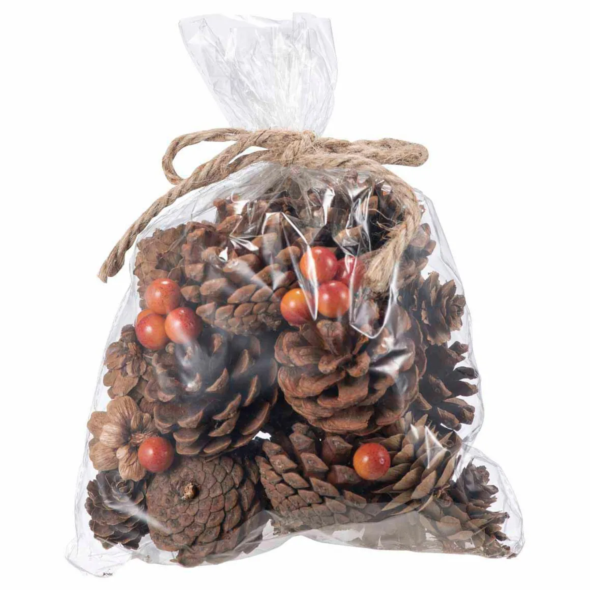 Dekorblanding med kongler og små oransje bær gir raskt en lun stemning i hjemmet. Perfekt i en glasskål, på et fat med lys, eller som pynt på servietten. Fint å bruke gjennom både høst og vinter.