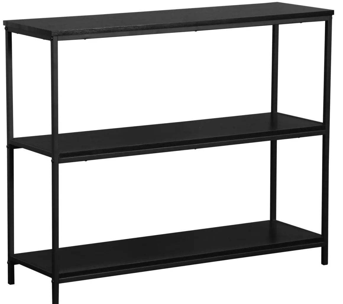 Hyllen har stramme, sorte metallrammer som gir et tidløst og moderne tilskudd i hjemmet – perfekt i det skandinaviske hjemmet.