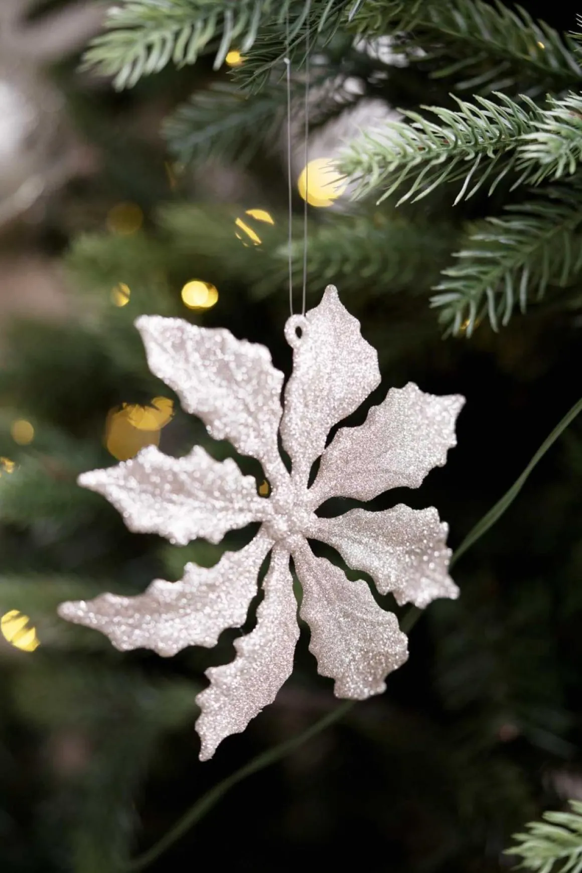 Pynt juletreet ditt med vår juletrepynt Flower! Denne vakre blomsten er dekket med skinnende gullglitter som fanger lyset og gir et glitrende, elegant utseende.