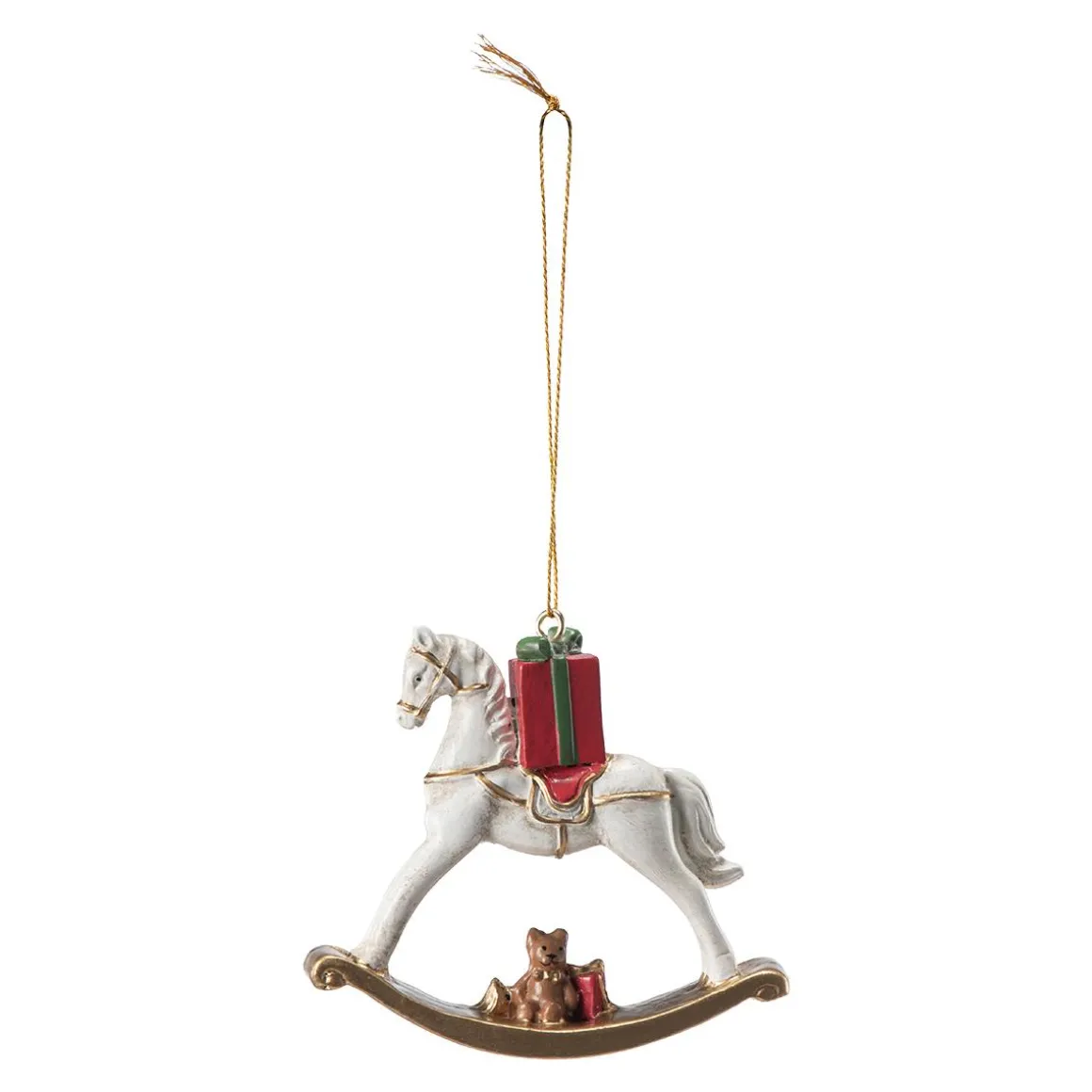 Denne klassiske juletrepynten med gyngehest, gaver og bamse bringer nostalgisk julestemning inn i hjemmet. En tidløs detalj som passer perfekt blant både tradisjonelle og lekne julekuler. Kombiner gjerne med flere figurer fra vårt sortiment for et varmt og personlig juletre.