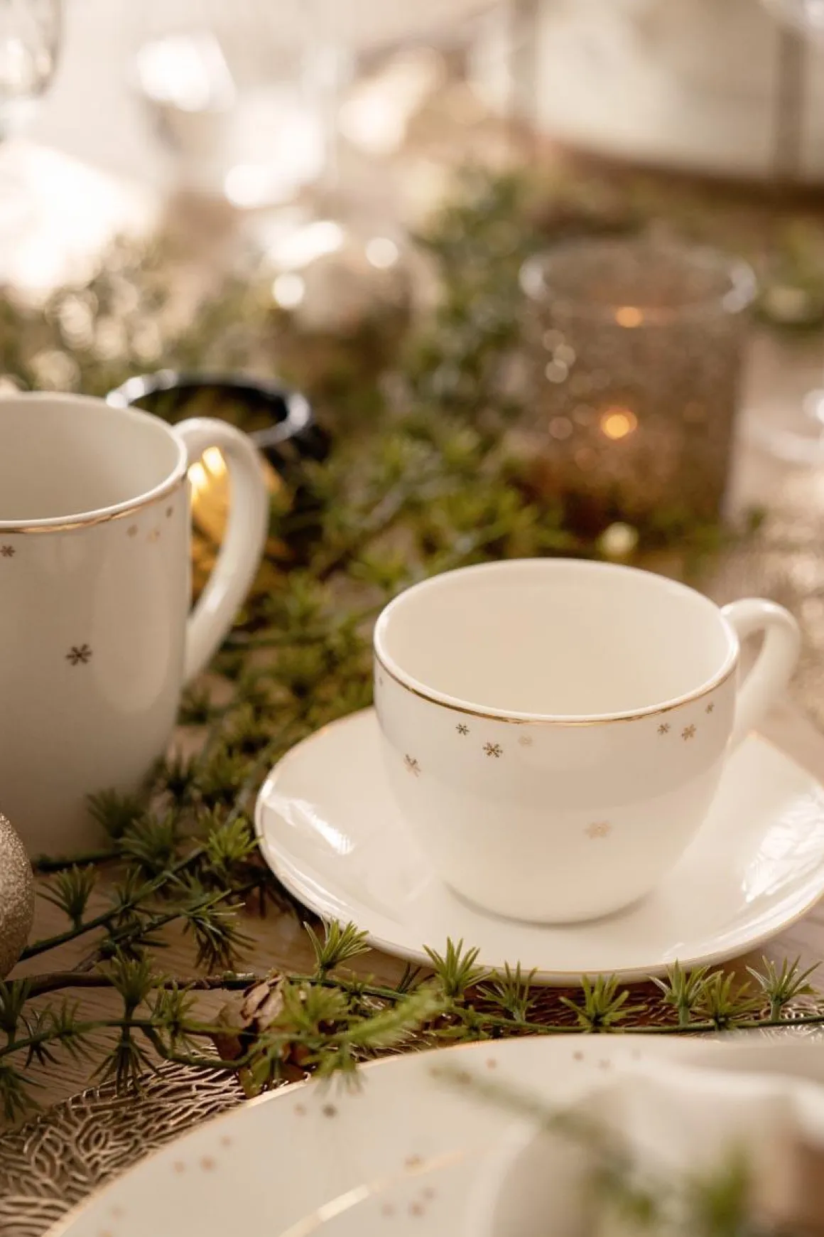 Kopp med skål Stjernehimmel med gulldetaljer gjør kaffepausen eller teserveringen ekstra elegant. Det delikate designet passer perfekt sammen med resten av