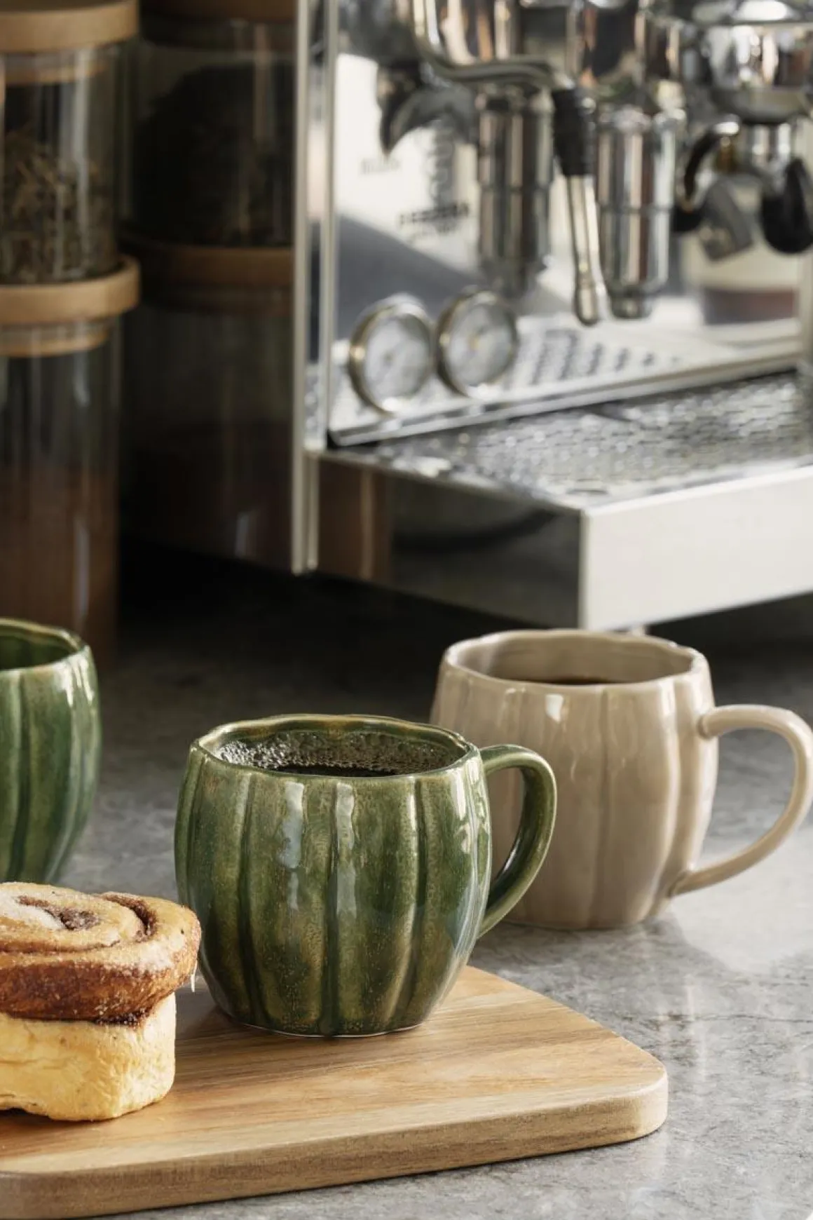 Perfekt for dagens første kaffekopp eller en varm kakao med marshmallows på kvelden. Den beige glasuren gir et lunt uttrykk, og den gresskarinspirerte formen gir kruset et sjarmerende preg.