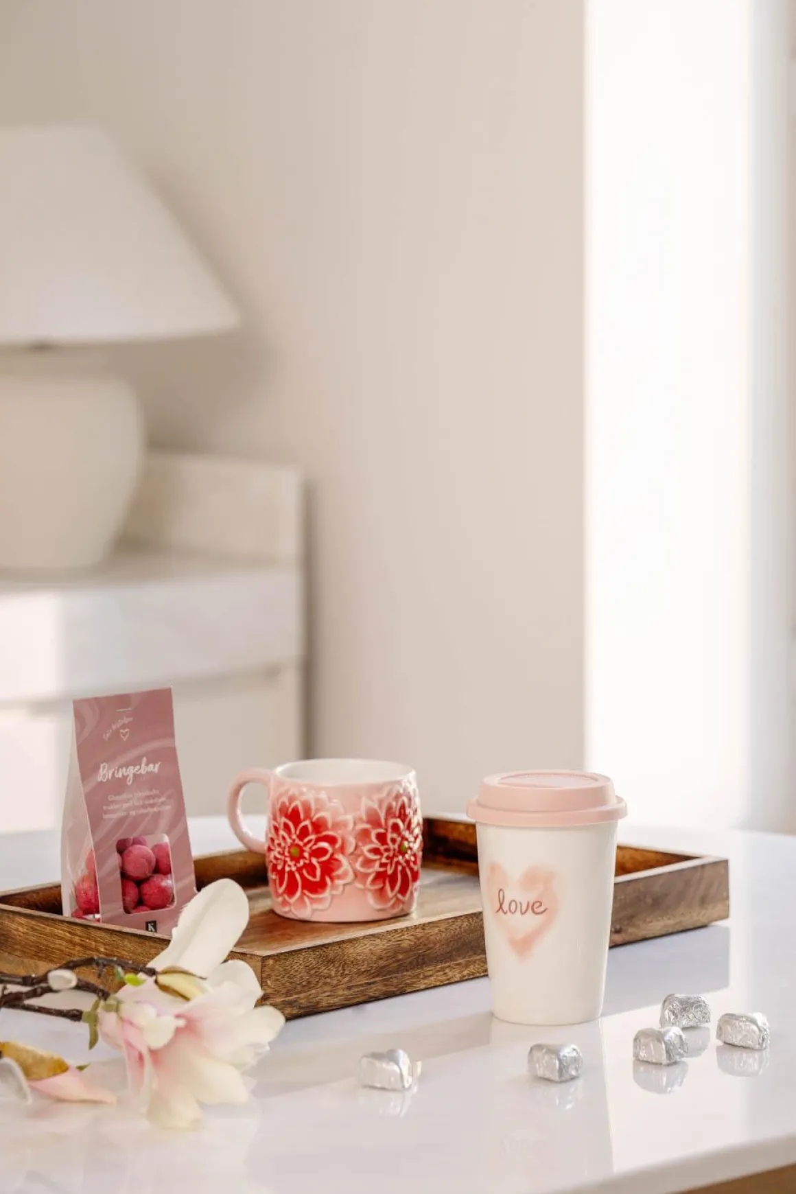 En kopp som fyller både hjertet og hånden. Den søte teksten og det myke designet gjør hver slurk litt koseligere. Perfekt for kaffe på farten, med et lokk som holder innholdet trygt på plass.